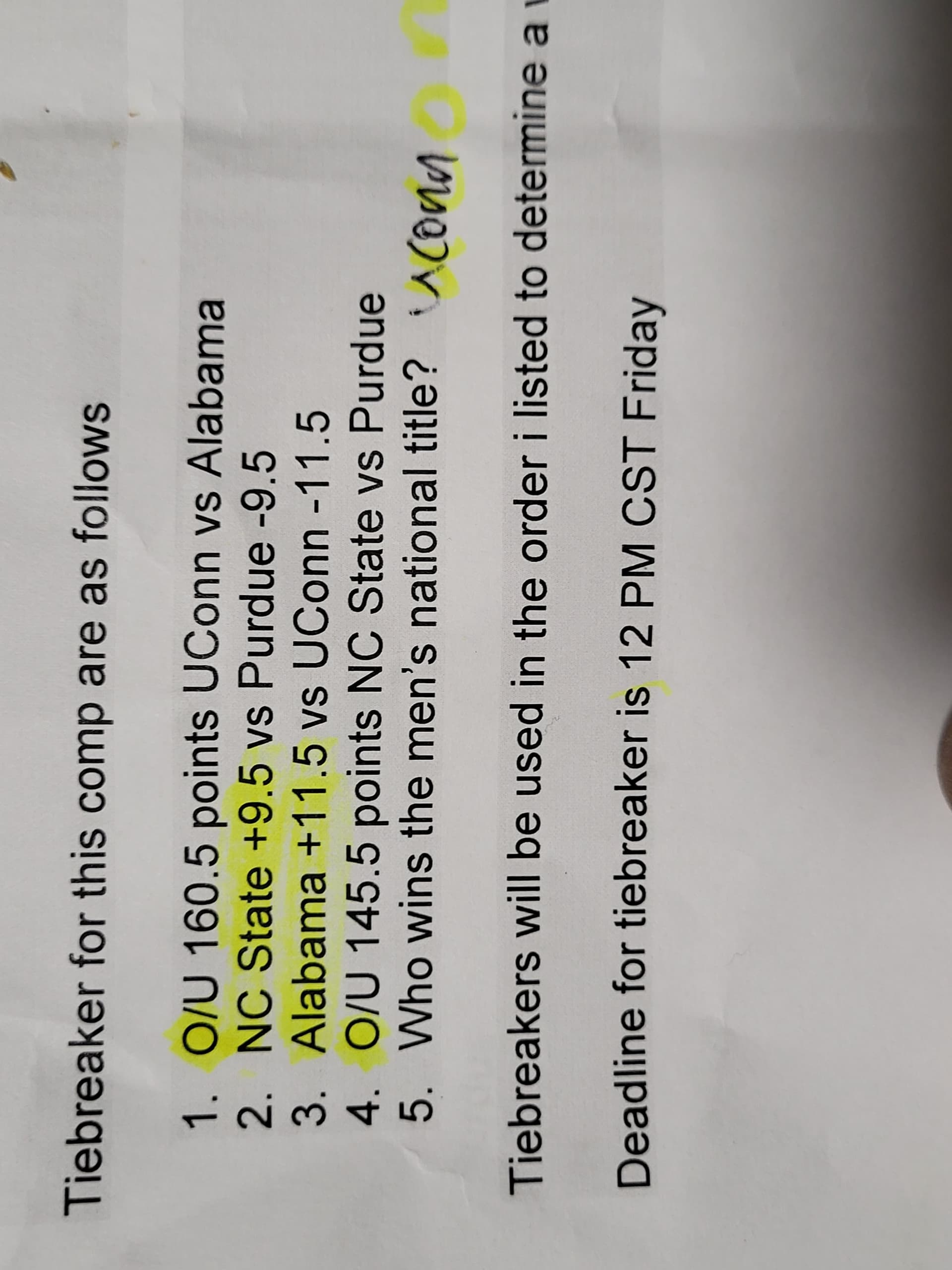 Looks like only 30 of the 65 contestants picked tie-breakers.