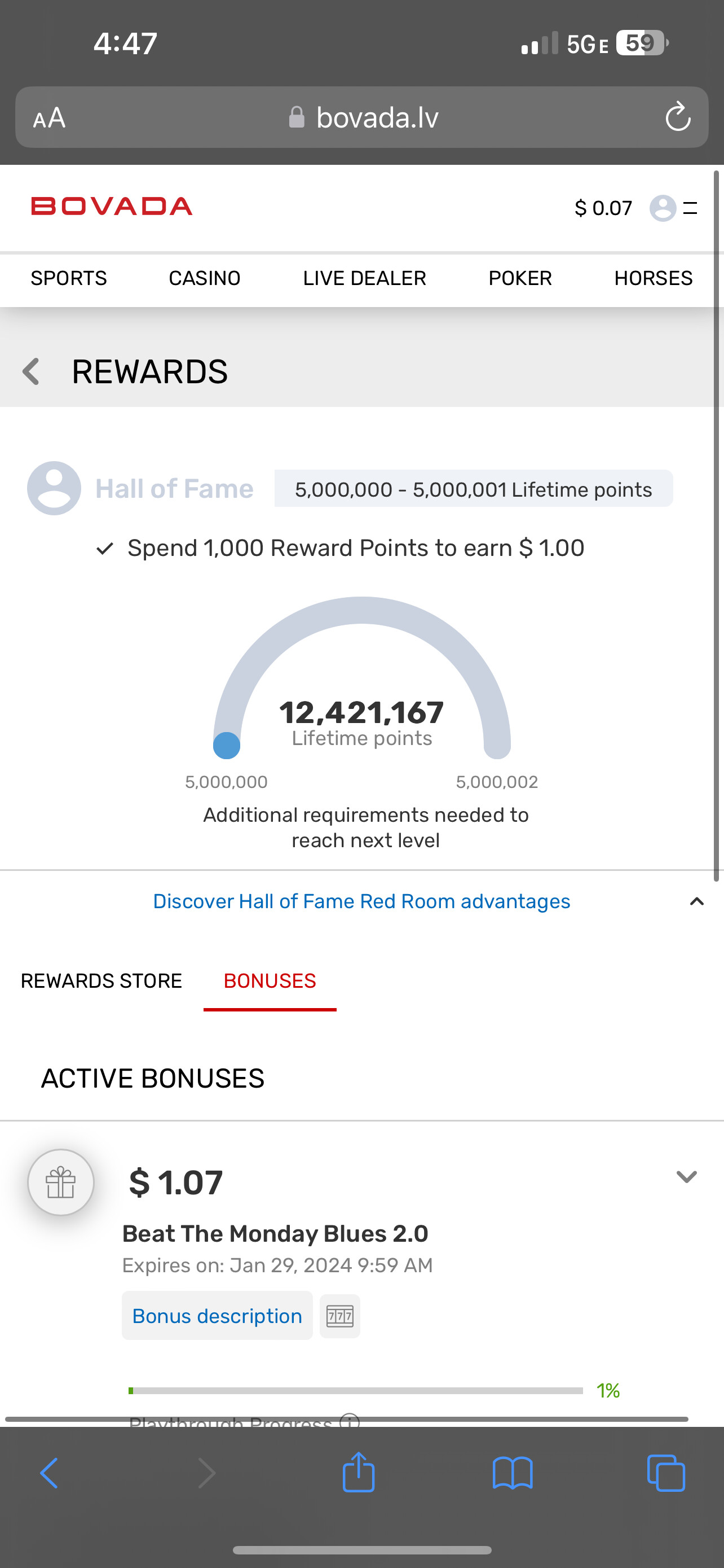 Today was horrendous. Didn’t hit anything at slots, didnt win a hand at BJ. Asked for a bonus, won won won until 85% if my rollover was met and then lost it all with $2 to spare. Such a joke