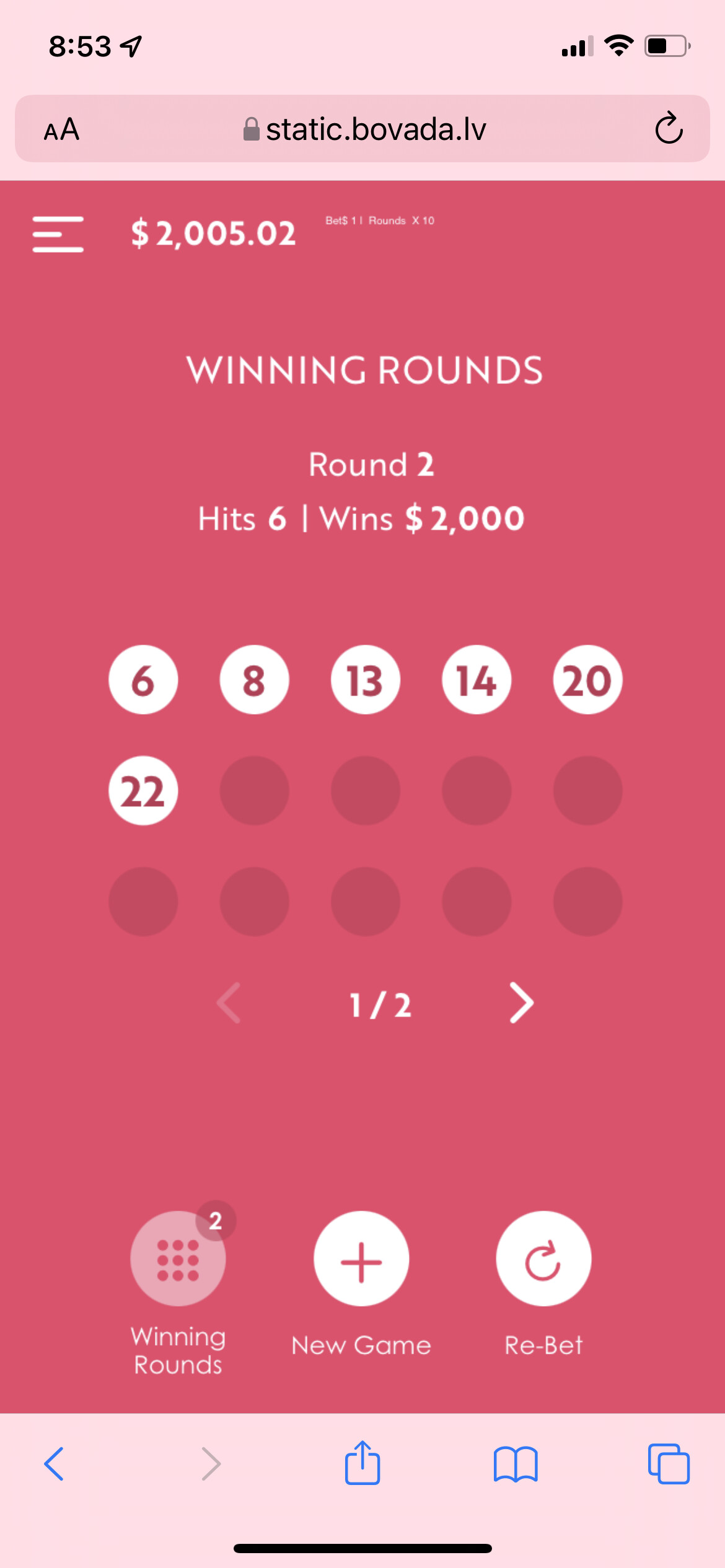 Had a really nice run last night. First on W&R XL. After stopping and cashing around $2600 I went back and started $1 keno pulls using the $11 in bonus money I accumulated from my earlier session. Second pull hit all 6 numbers for another $2k!