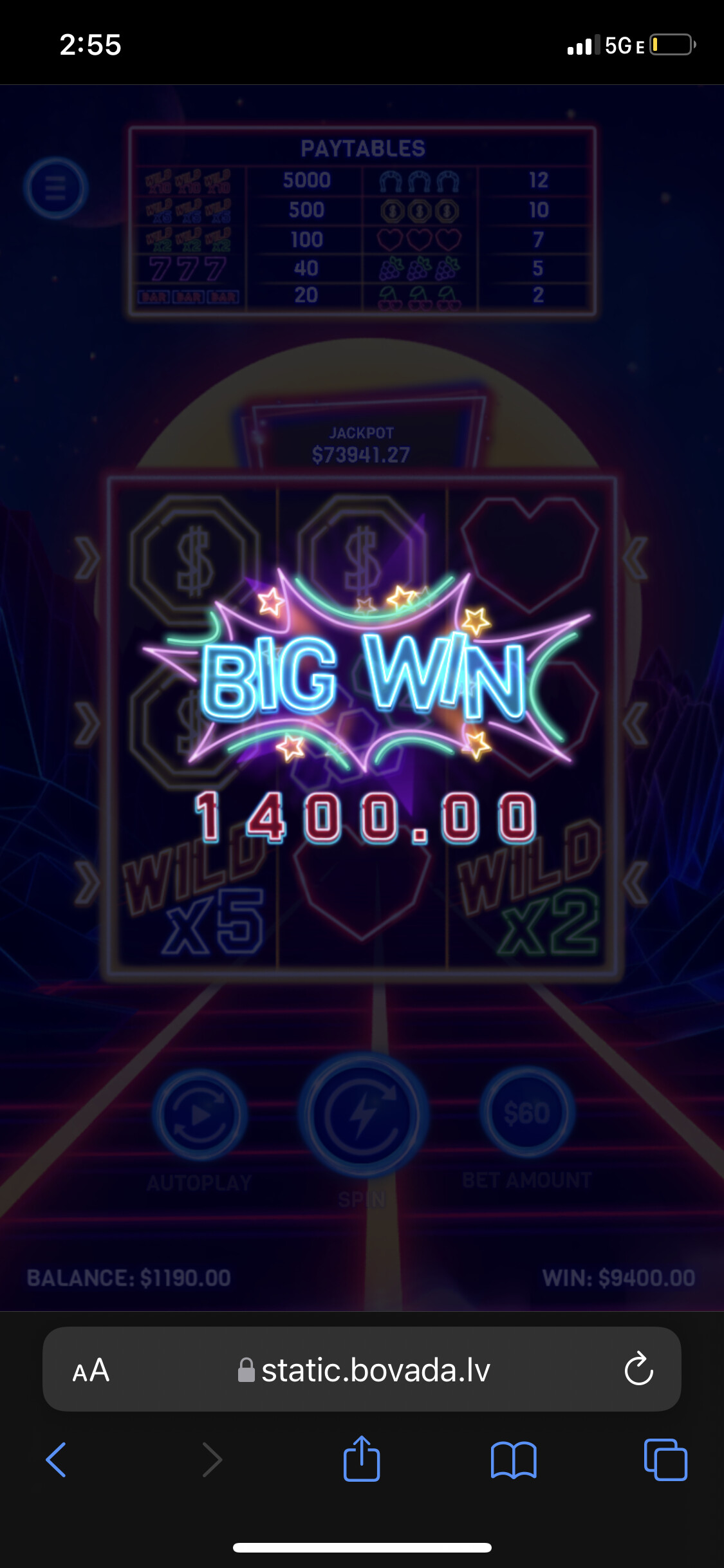 Both times I’ve won over 150k I start out at $2 bets if I get up over 200 I raise to $5 and at $400 I’m at $10 and I keep progressing