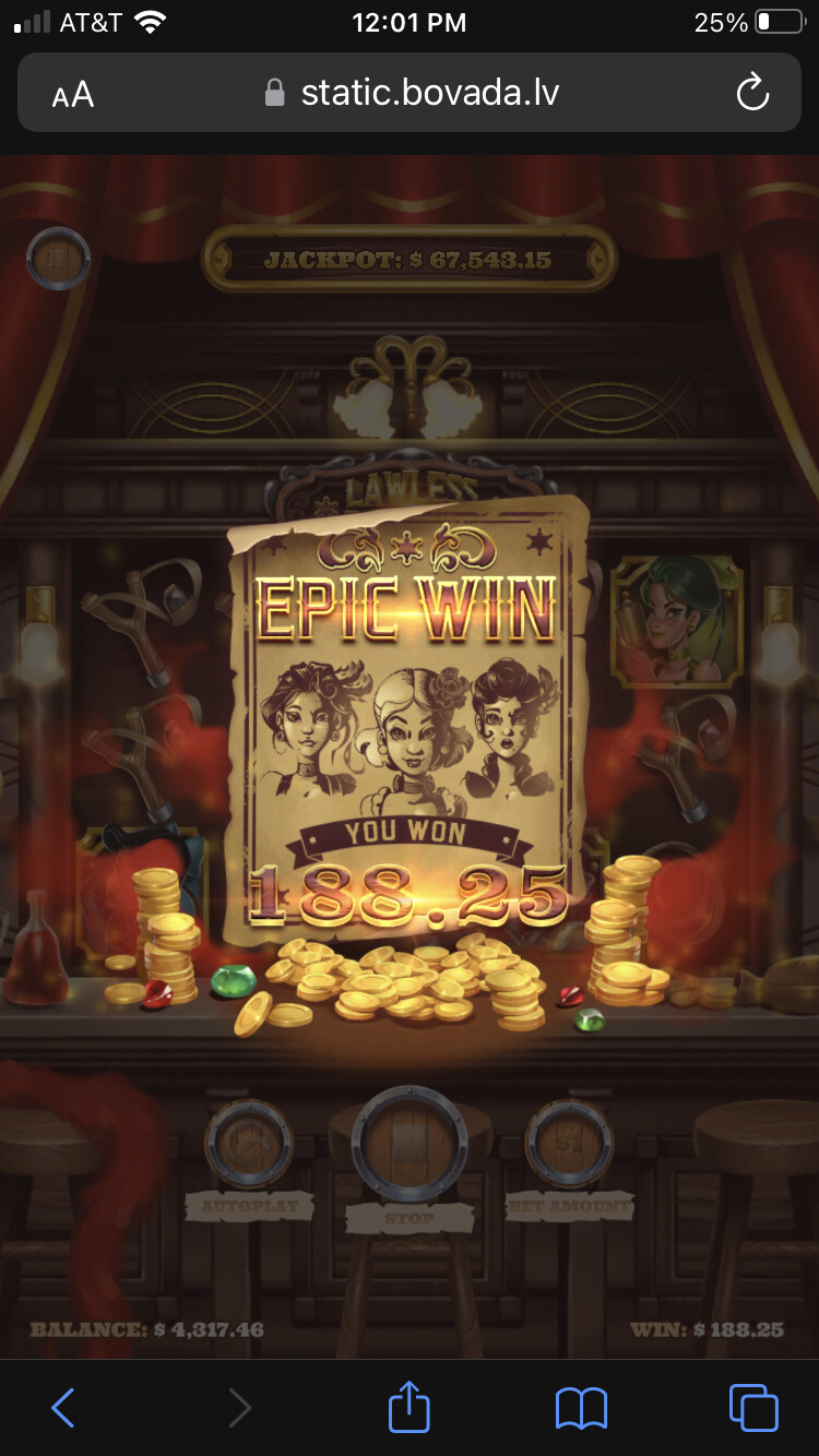 Not my first one either. I hit Lawless Ladies for $800 and change about 6 months ago. Ran that up to $2k before cashing out 1.