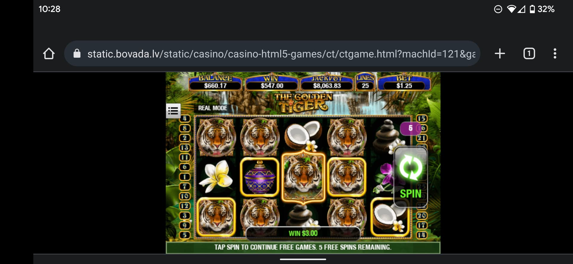 I was on 10x Vegas with my last $8-12 with $0.09 spins when my balance was bumped up significantly (thanks to the hosting team).