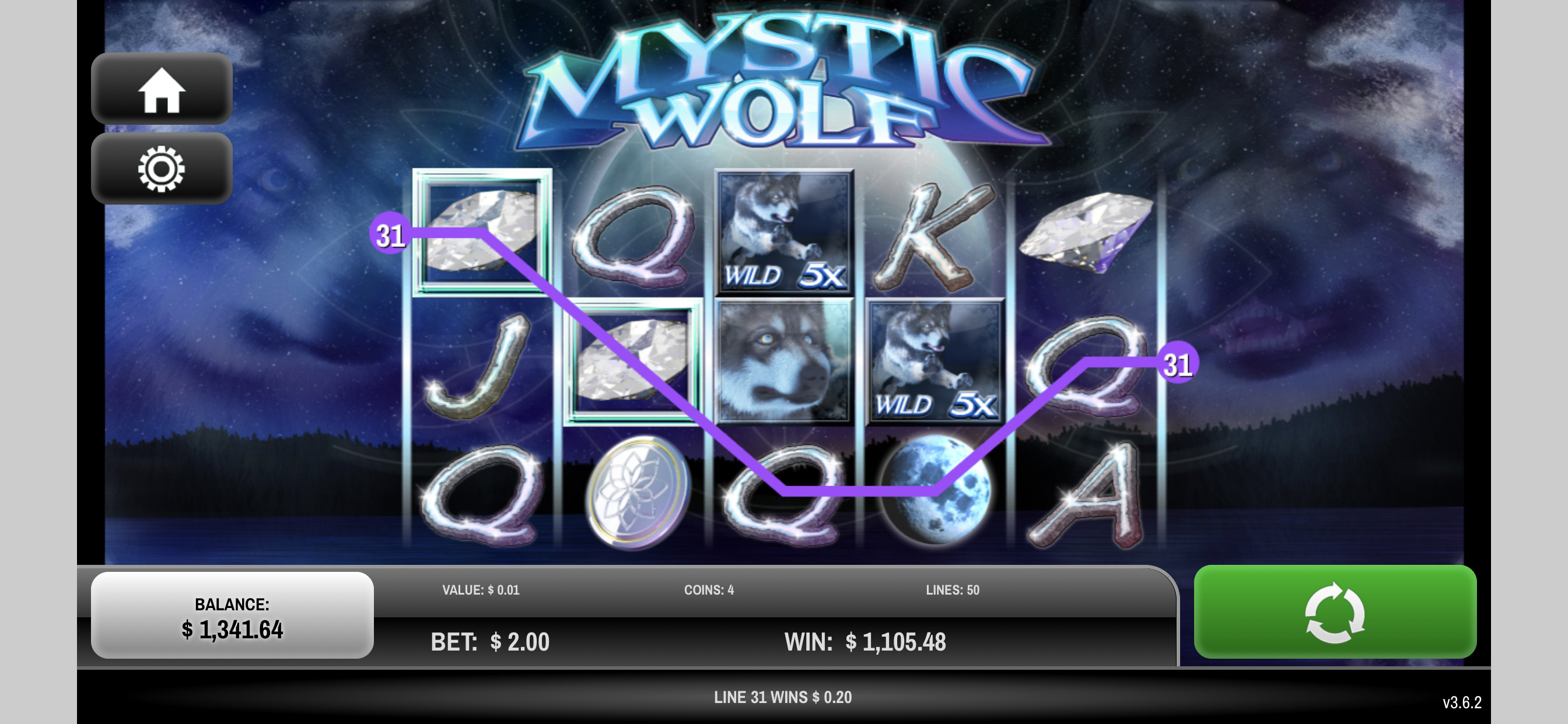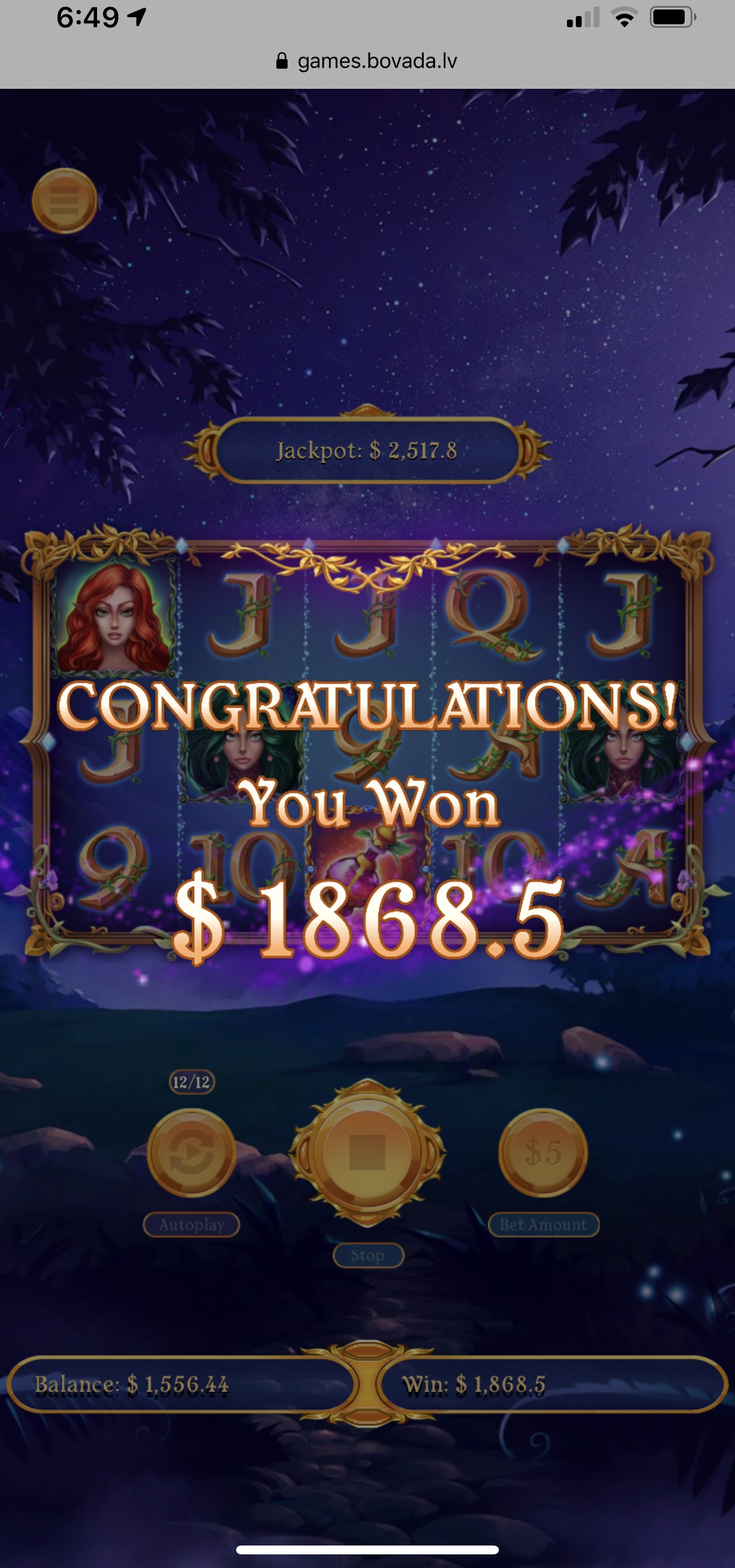 374x pull on $5 spin- 12 bonus round spins epic win on 4th bonus spin.