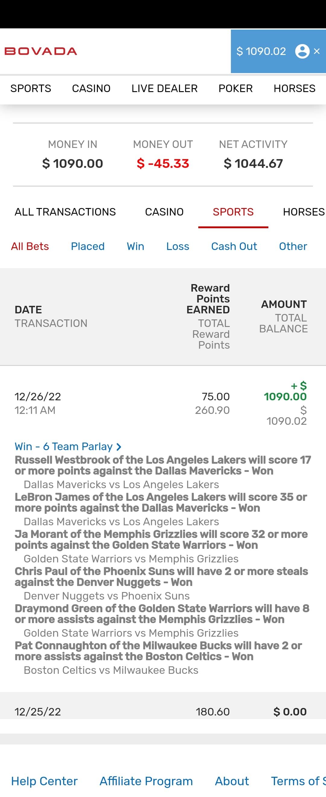 $5 bet on a 6pk prop bet