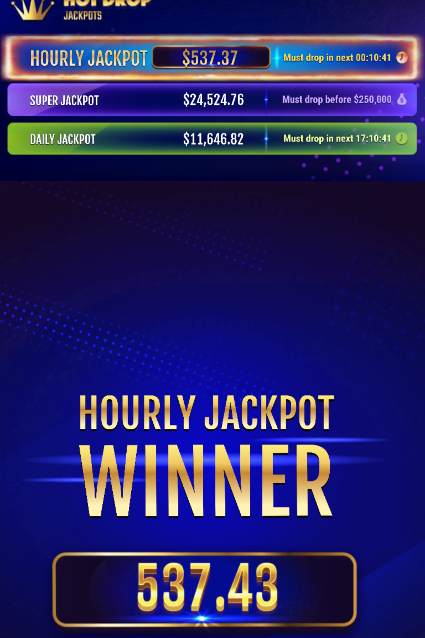 has anyone ever posted a hot drop super jackpot win yet? Should have been what 50-75 of those given out in theory by now. Most over 200K.
