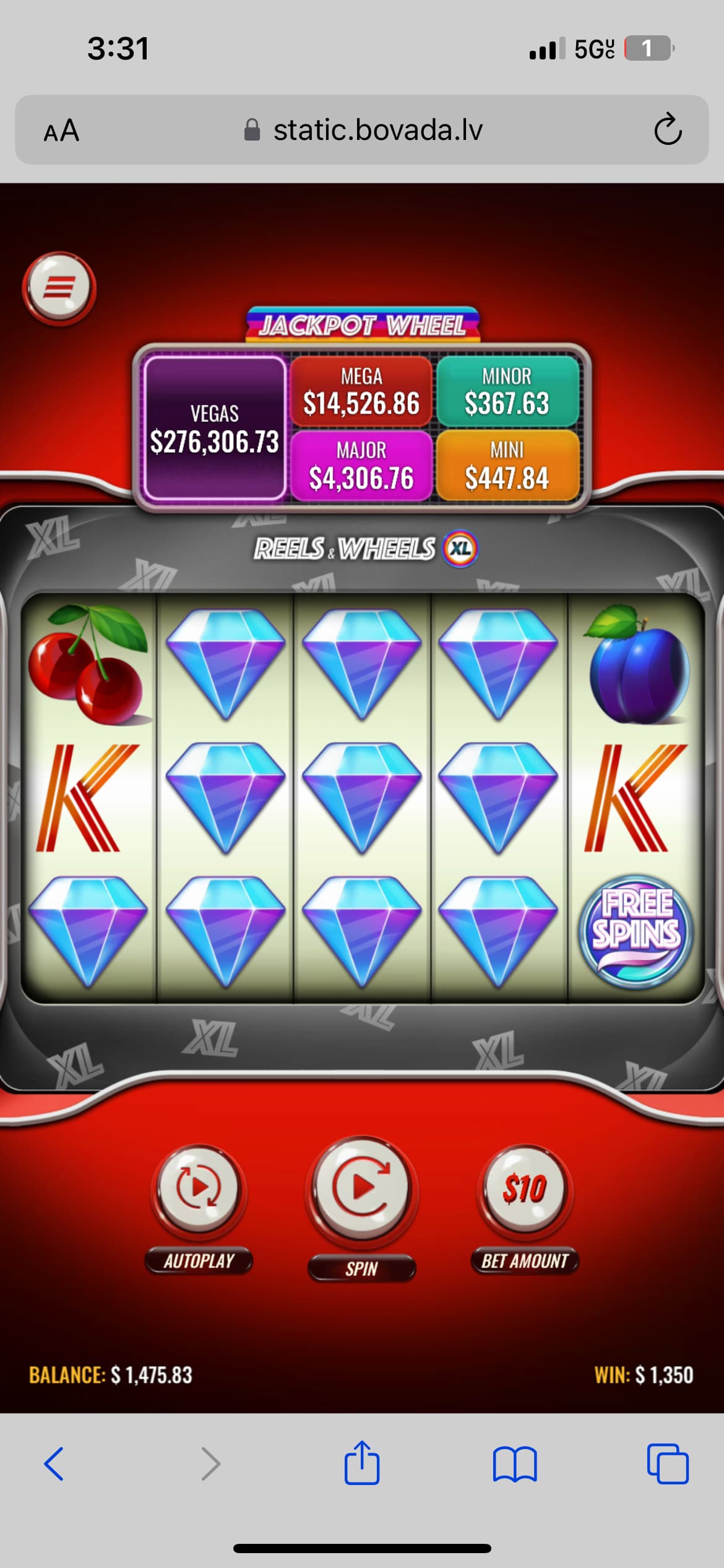@0ny_123 do you find that you get better percentage payouts betting at least $10 or more per spin than playing $5 or less?