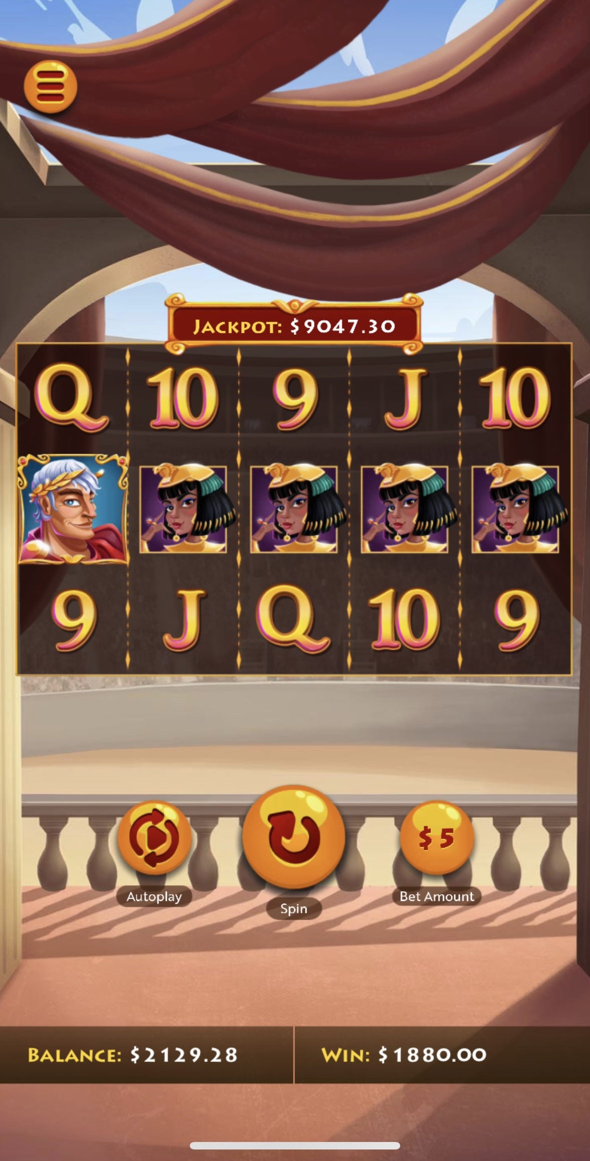 Same…thousands of spins on Caesar and had never seen 5 Cleo’s or hit the jackpot then I hit the jackpot and 5 Cleo’s twice about 3 weeks apart, all at $5. The second Cleo hit was during a bonus round so it paid double. Caesar has been kinder than usual lately.