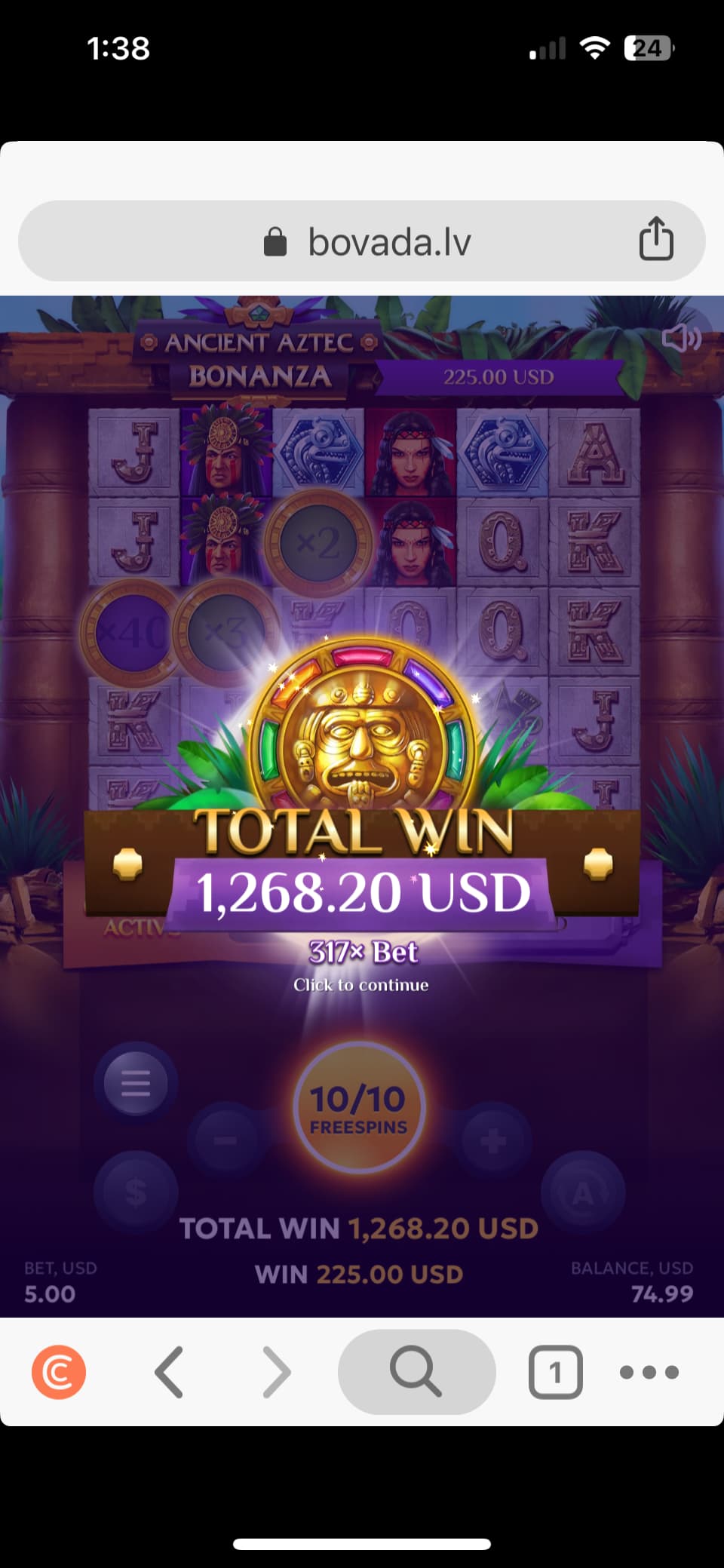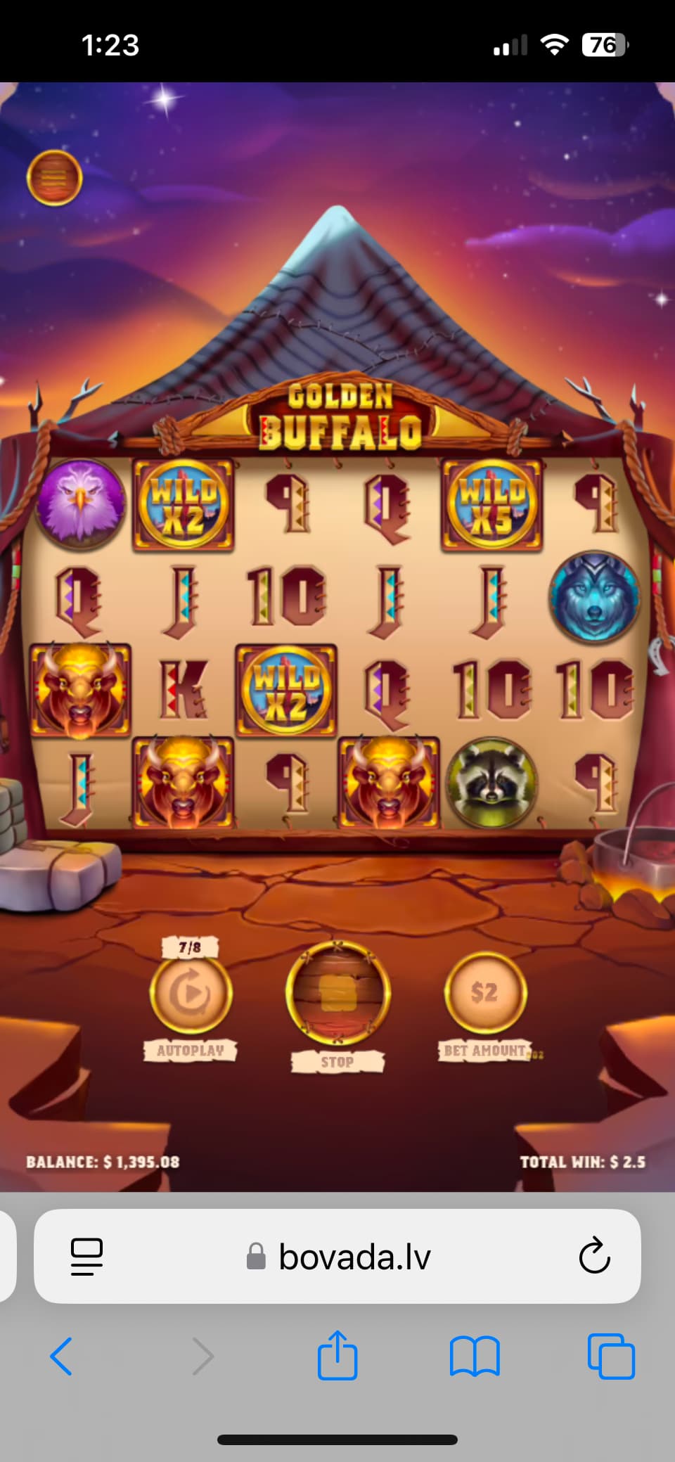 Needed 1 more Buffalo on last real or multipler. Would have been great. But a nice hit for $2 a spin.