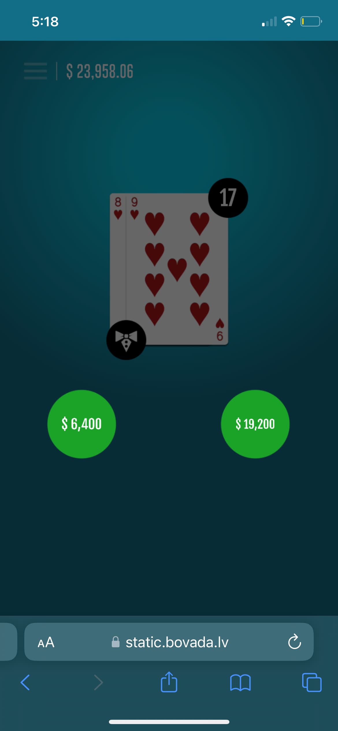 Two hands played and won (blackjack) for $6,400 and $19,200