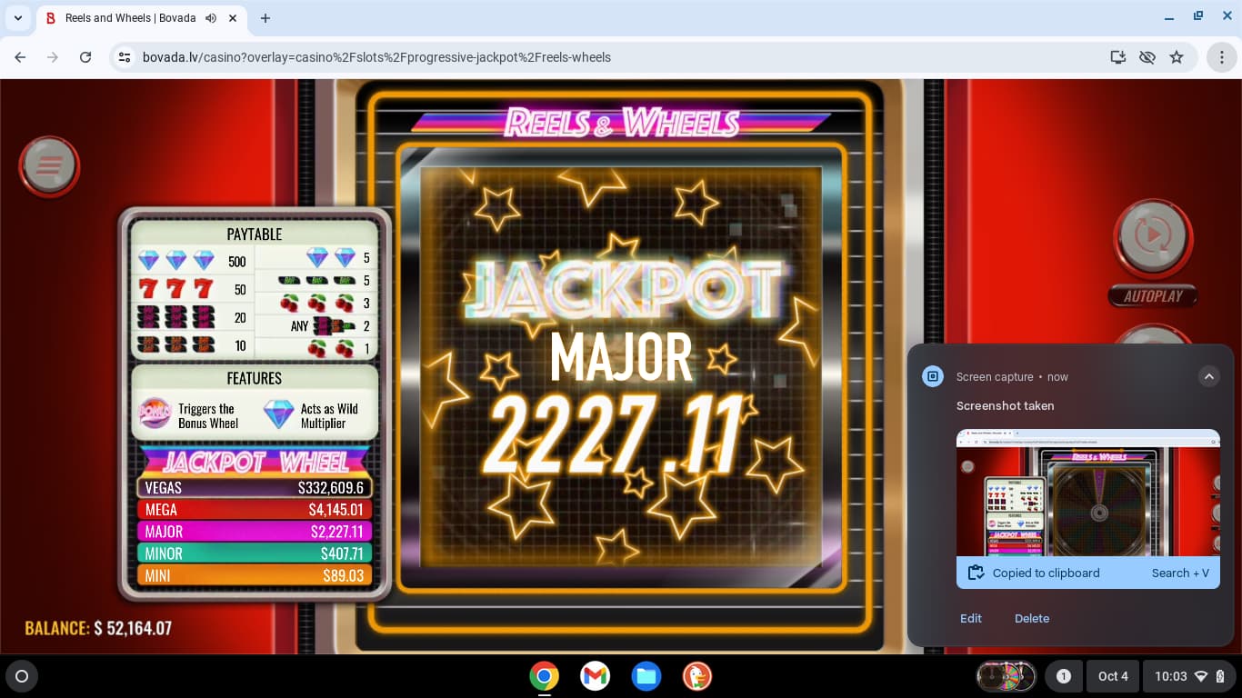 What did you hit to win that in Ceaser’s? I never win big on that.