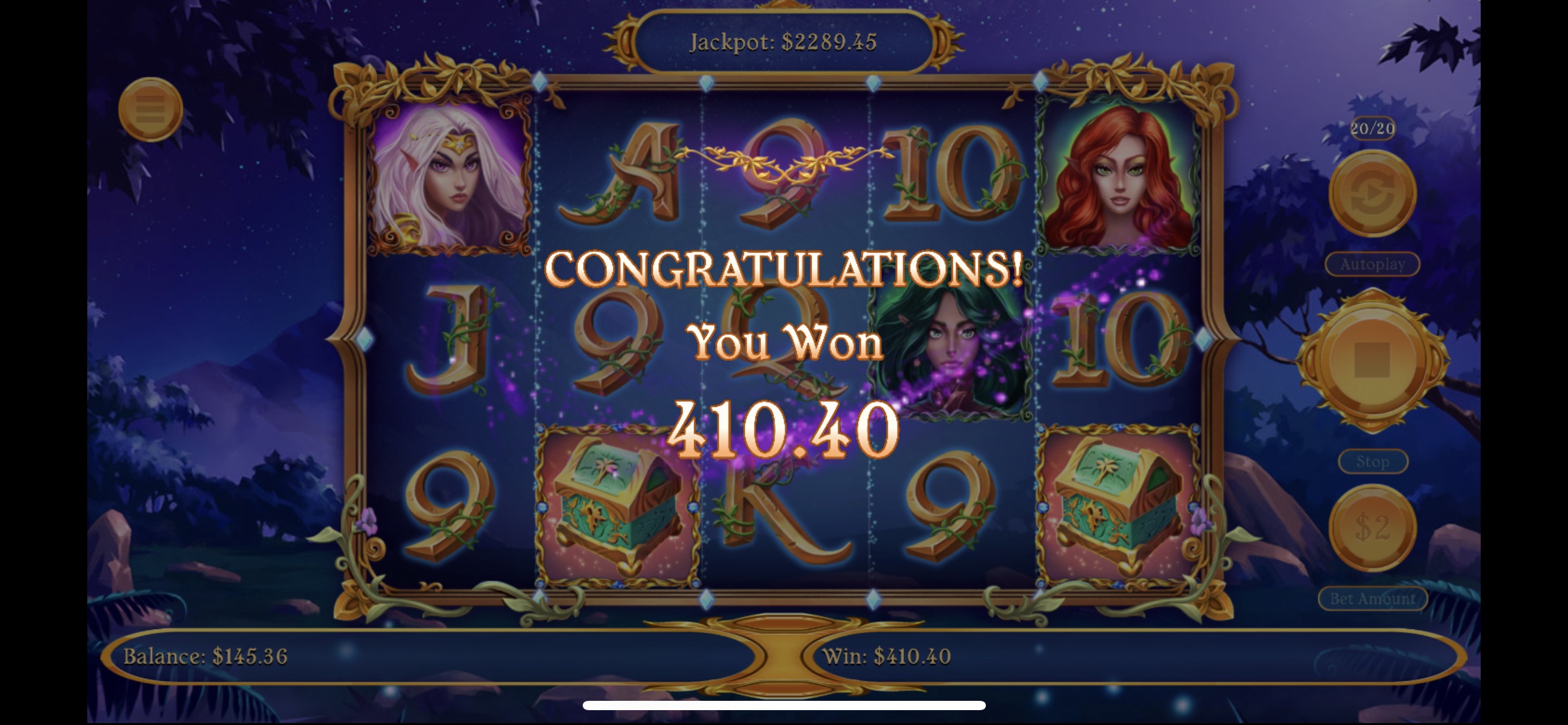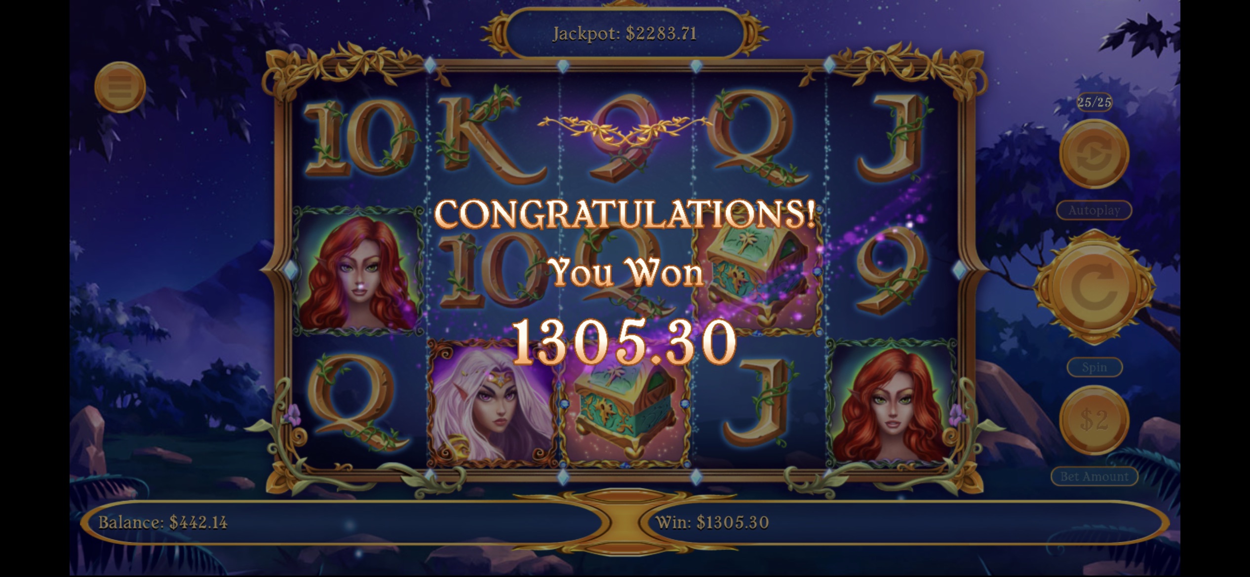 . Sure would have been great on 2 or 5 dollar spins.Agree. I’ve had similar experiences. My biggest Fairy win to date came from 12 bonus spins rather than one of the higher numbers. That said, I’ve never had 25 spins not pay well. 20 spins yes, but not 25. Goes for Dragon Siege too.
