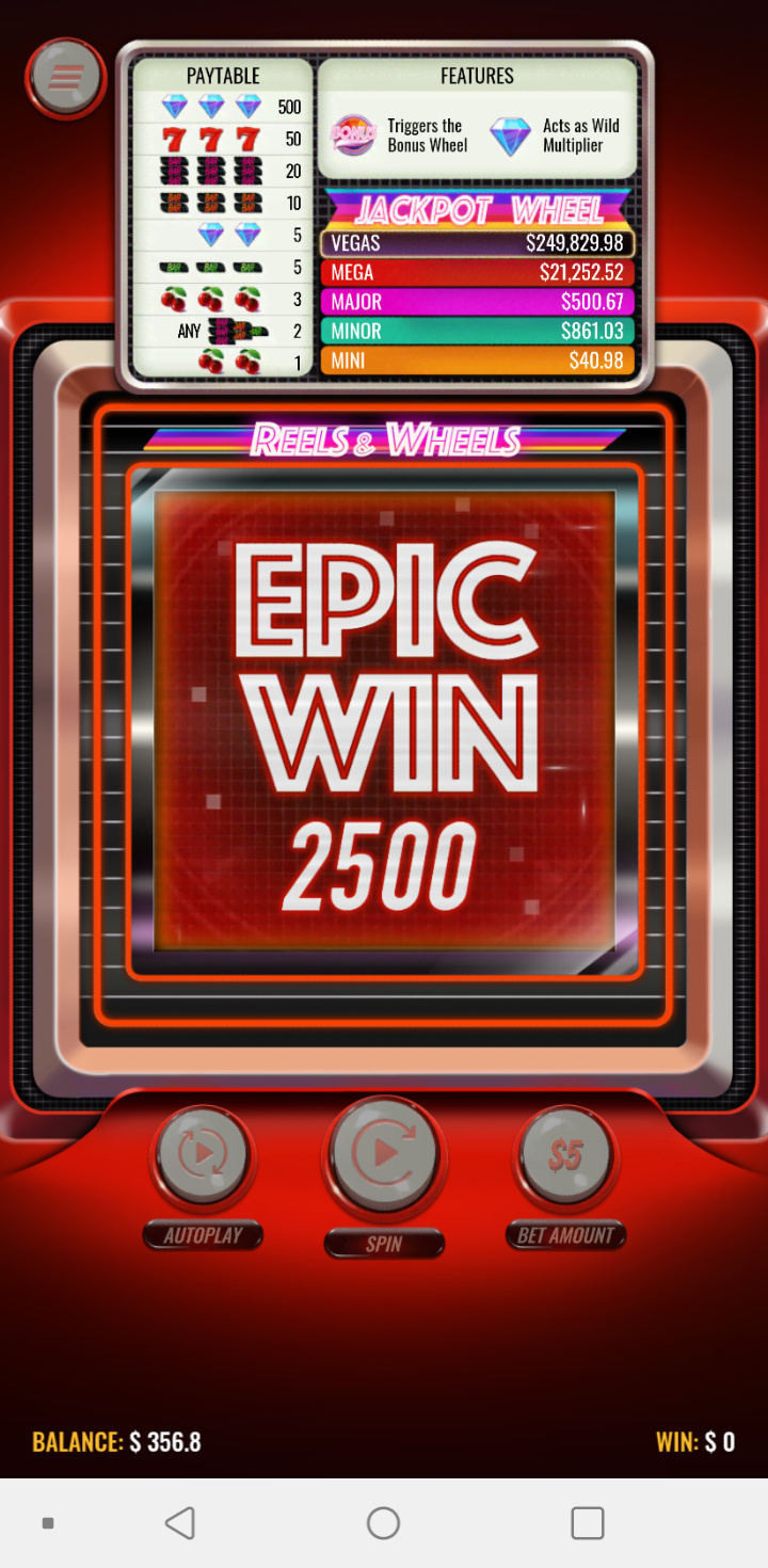 Here is a few wins i hit tonight. I hit the jackpot spot on wheels and in jackpot round i hit the mini for like $68. Very disappointing but was exciting.
