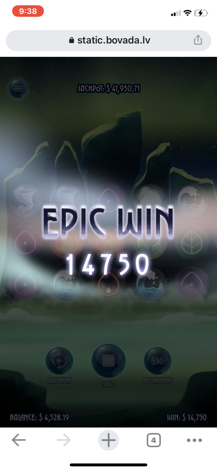 I don’t have a picture but I won the mystery progressive on Witches and Wizards for $3,300 betting $5 per spin. I never thought it would happen, but it does. It was super random, I spun 2 more times before I realized that my balance was over $4,000 and the progressive was reset to $1,000