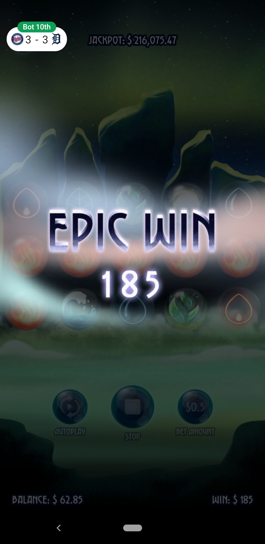Put all my money on the twins and it’s not looking good. Did a Bitcoin deposit and then mystic saves the day! .50 cent spin bonus round