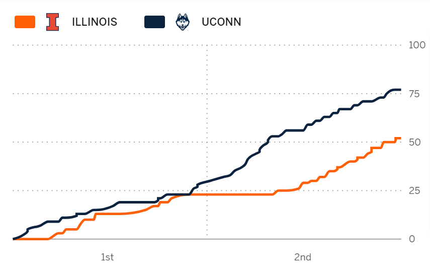 OMG,never mind. I just looked at ESPN’s score graph! From 23-23 to 53-23. I’ve never seen anything like that between two teams who are supposed to be of at least similar caliber.