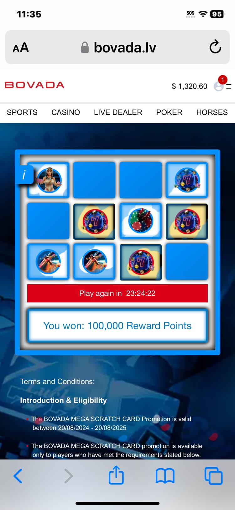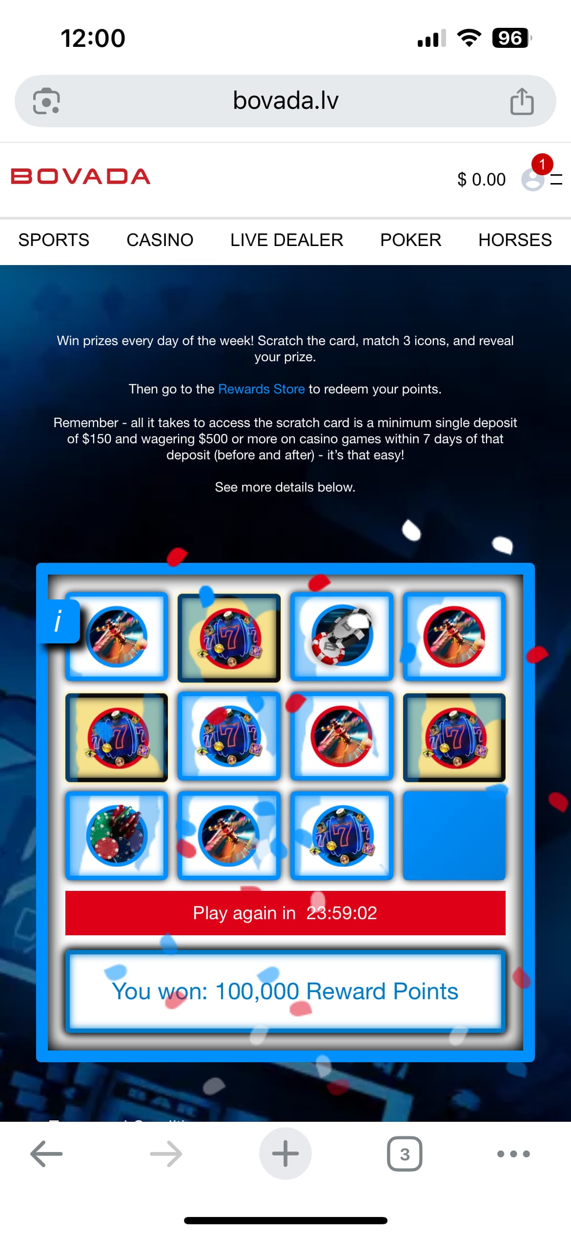 Not that it did me any good. Hit the slots and and couldnt even get to 2x play through before I lost it all. It crazy bonuses are 25-35x play through. I donāt ever remember having this bad of a time fresh off a a deposit. Worst part is my $155 deposit ended up being 149.80 so I wasnāt even eligible for the scratch card. All in all I wish I had done something else for the 30 min it took me to lose $150. Maybe you guys waiting for deposits to hit still are the lucky ones.