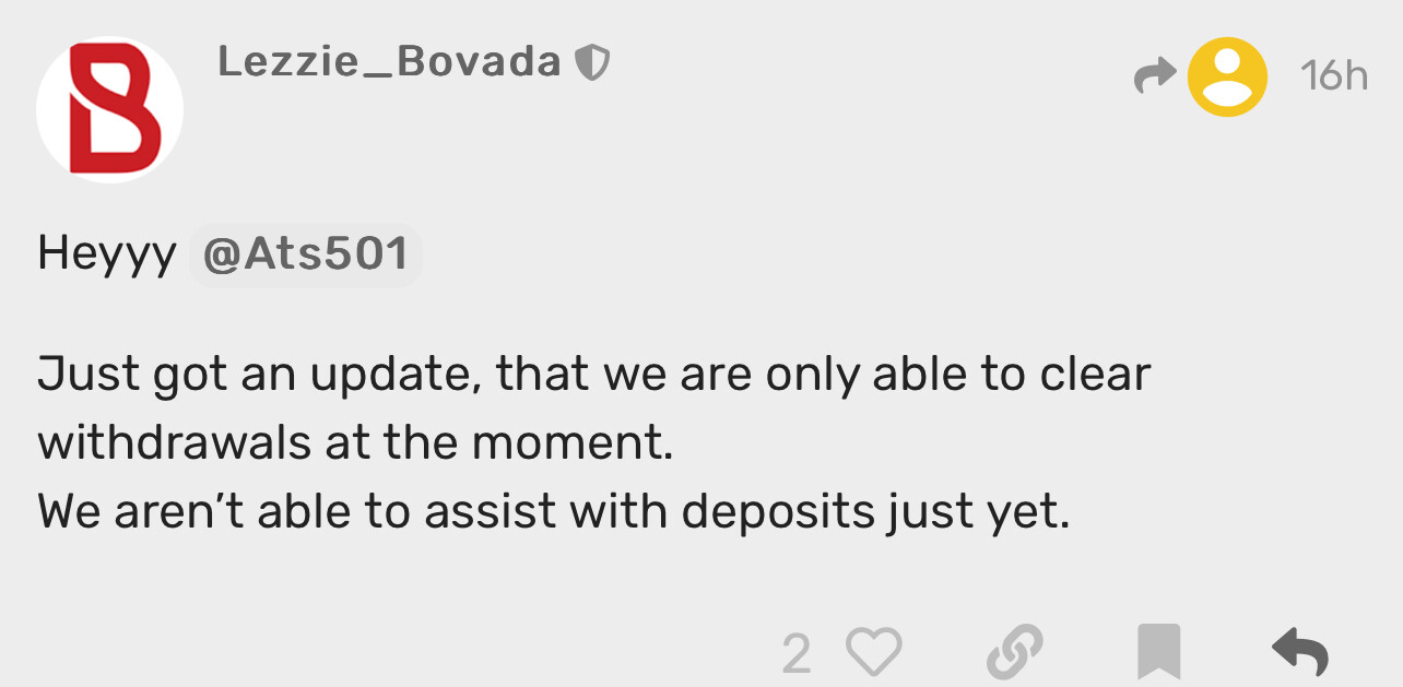Hi @Tdyz_123, new deposits should be processed smoothly. If you encounter any issues, please send us a private message, and we’ll be happy to look into it for you.