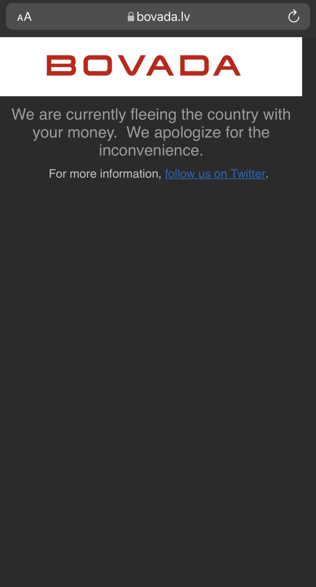 Personally I donât think itâs going to be up for awhile and perhaps this should be a learning lesson for Bovada to have a back up site for clients to access while the main site is being upgrading.