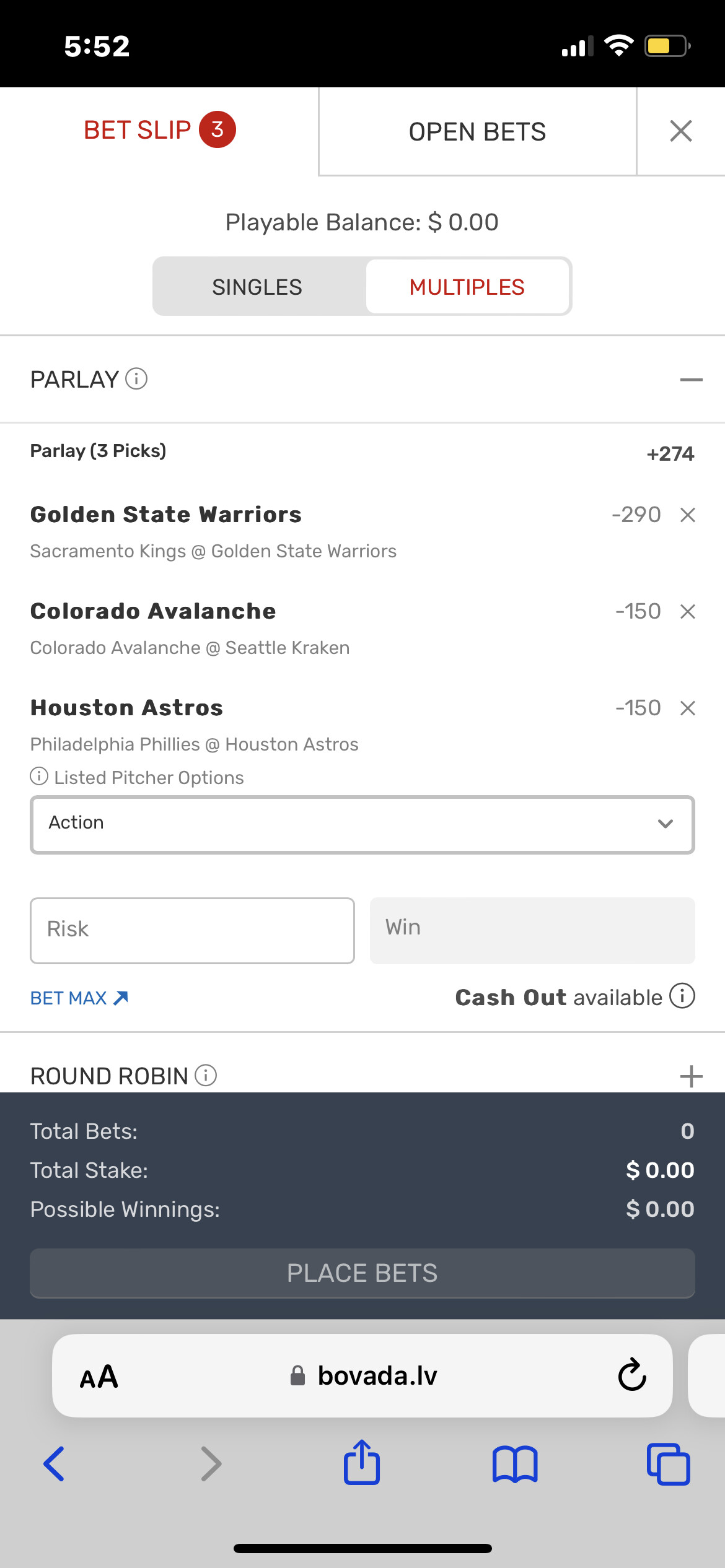 @Rmilia1 - you can disregard my parlay. Golden State lost. One less ticket you need to look at. Thanks again for helping out the community.
