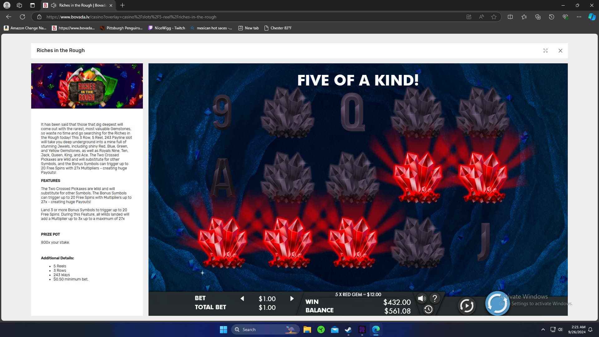 430$ on Riches in the rough!
