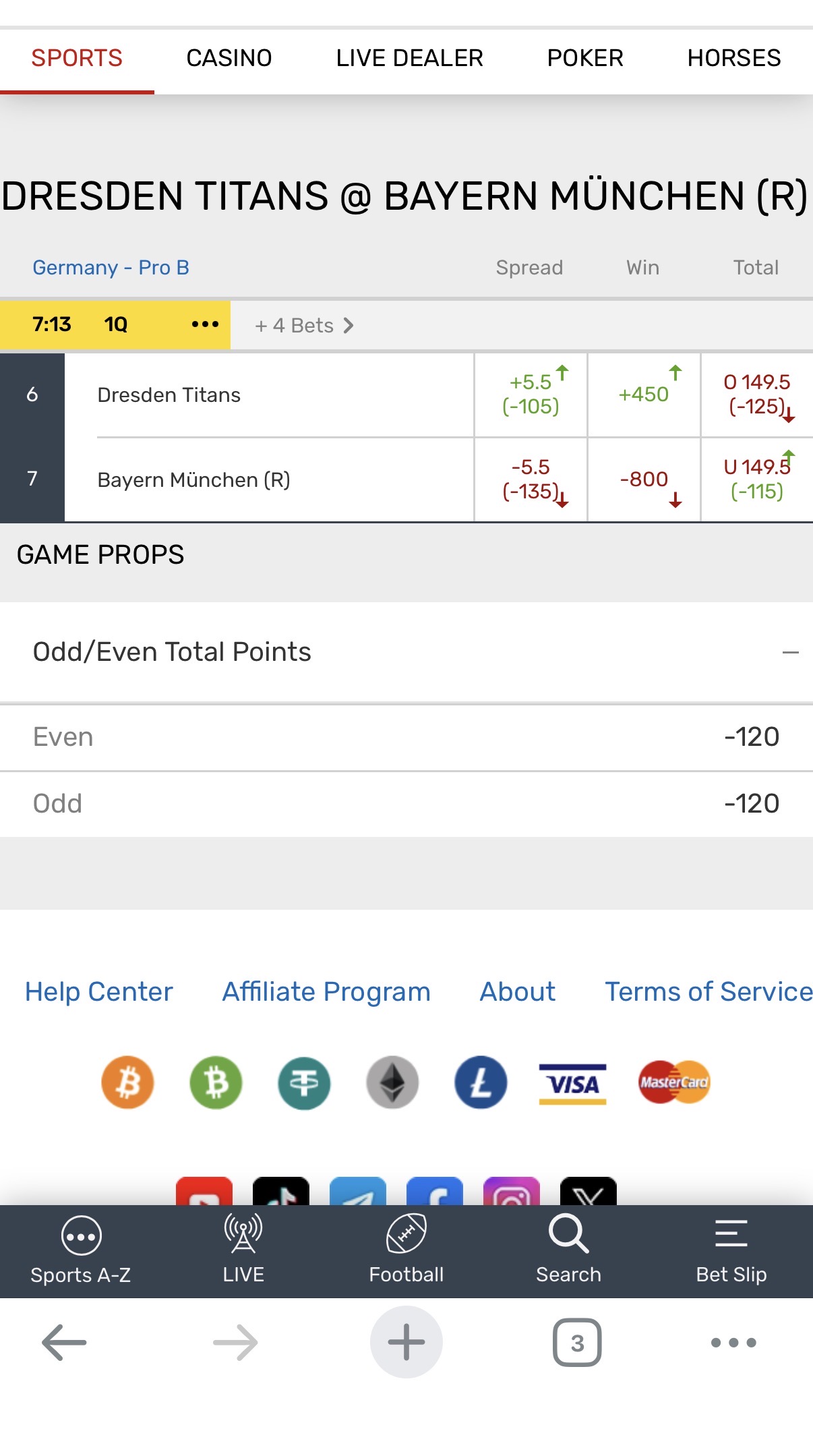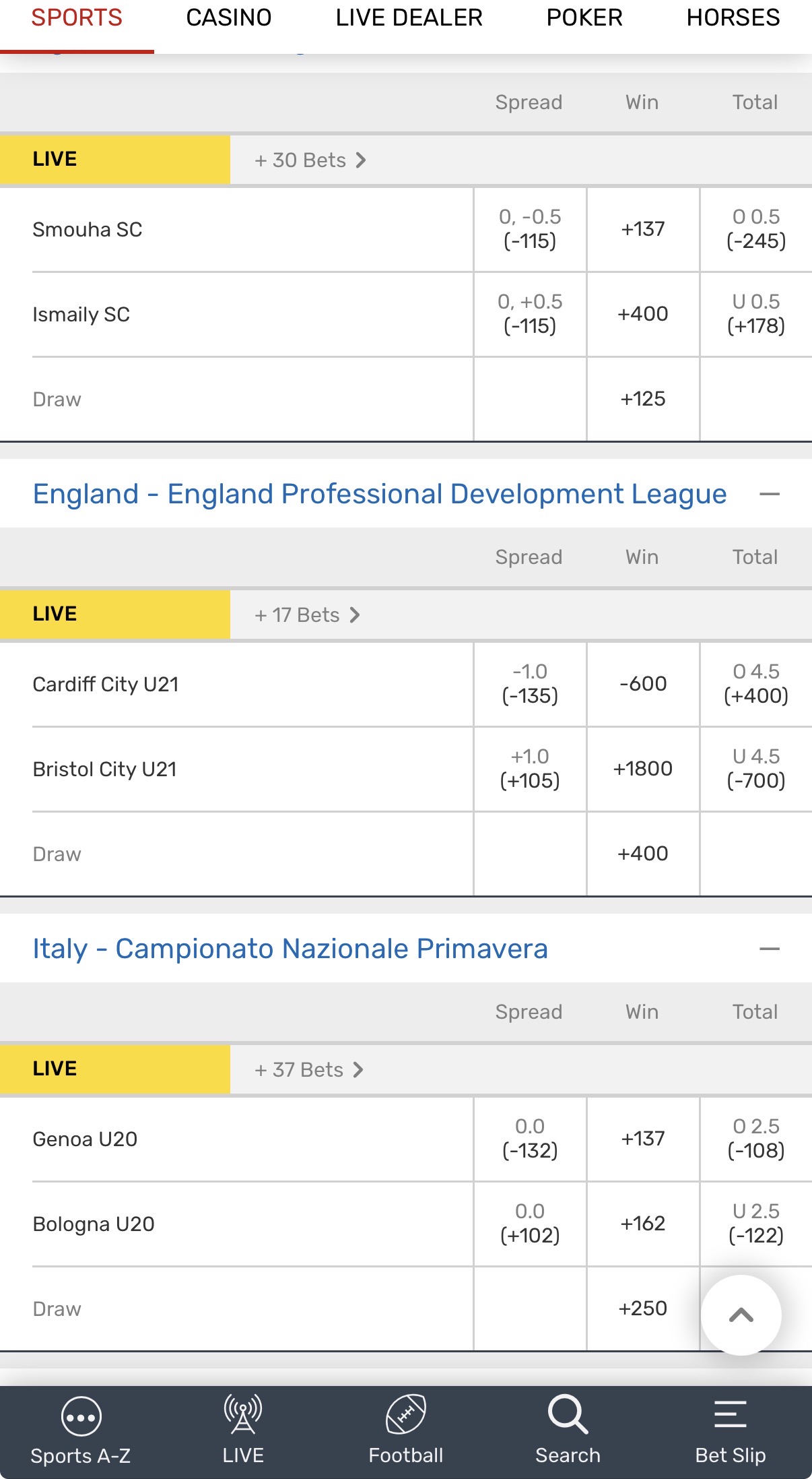 Live soccer wagering on Bundesliga all types of messed up. Had to search for it and almost no lines availables.
