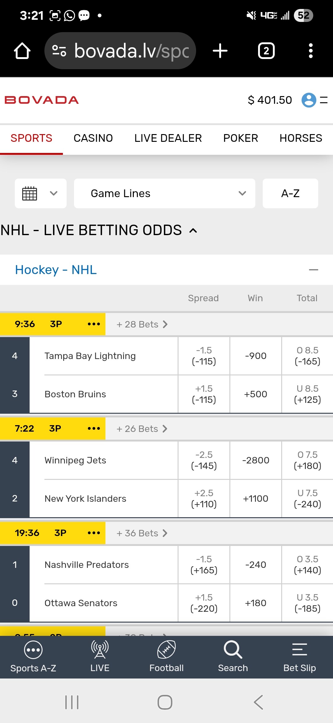 We have just heard there is an issue with lines and also possibly wager placement, this is being looked into.