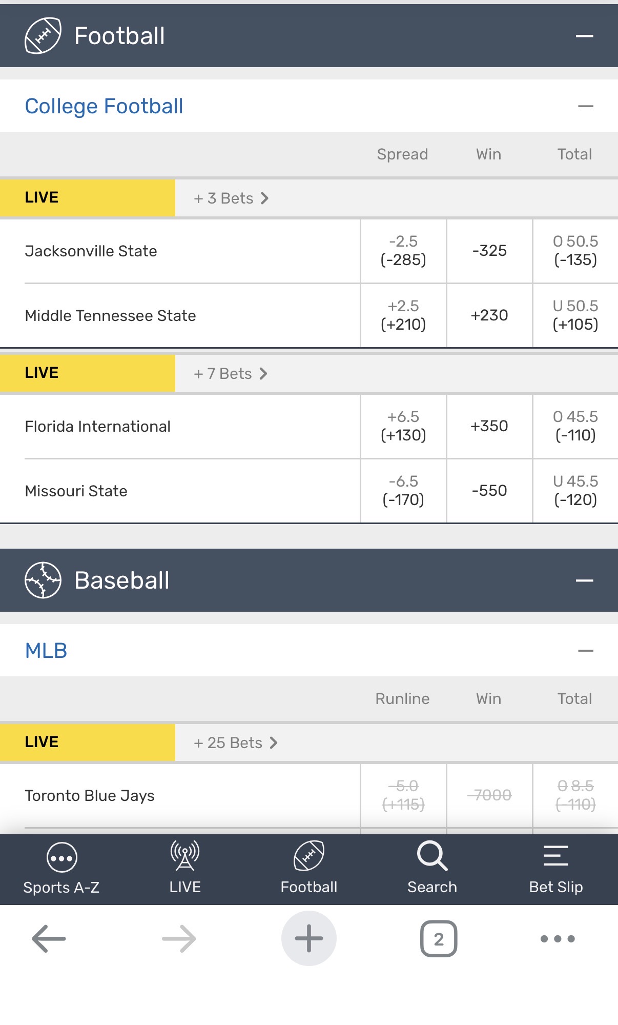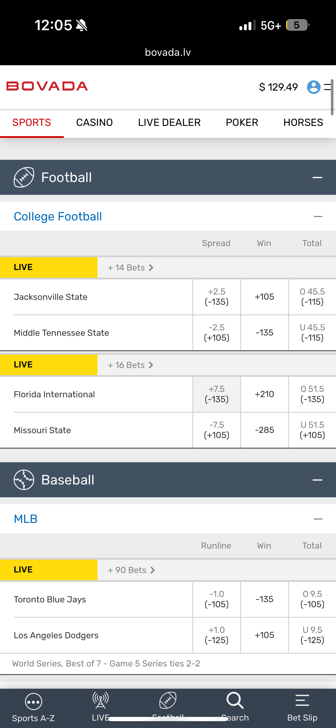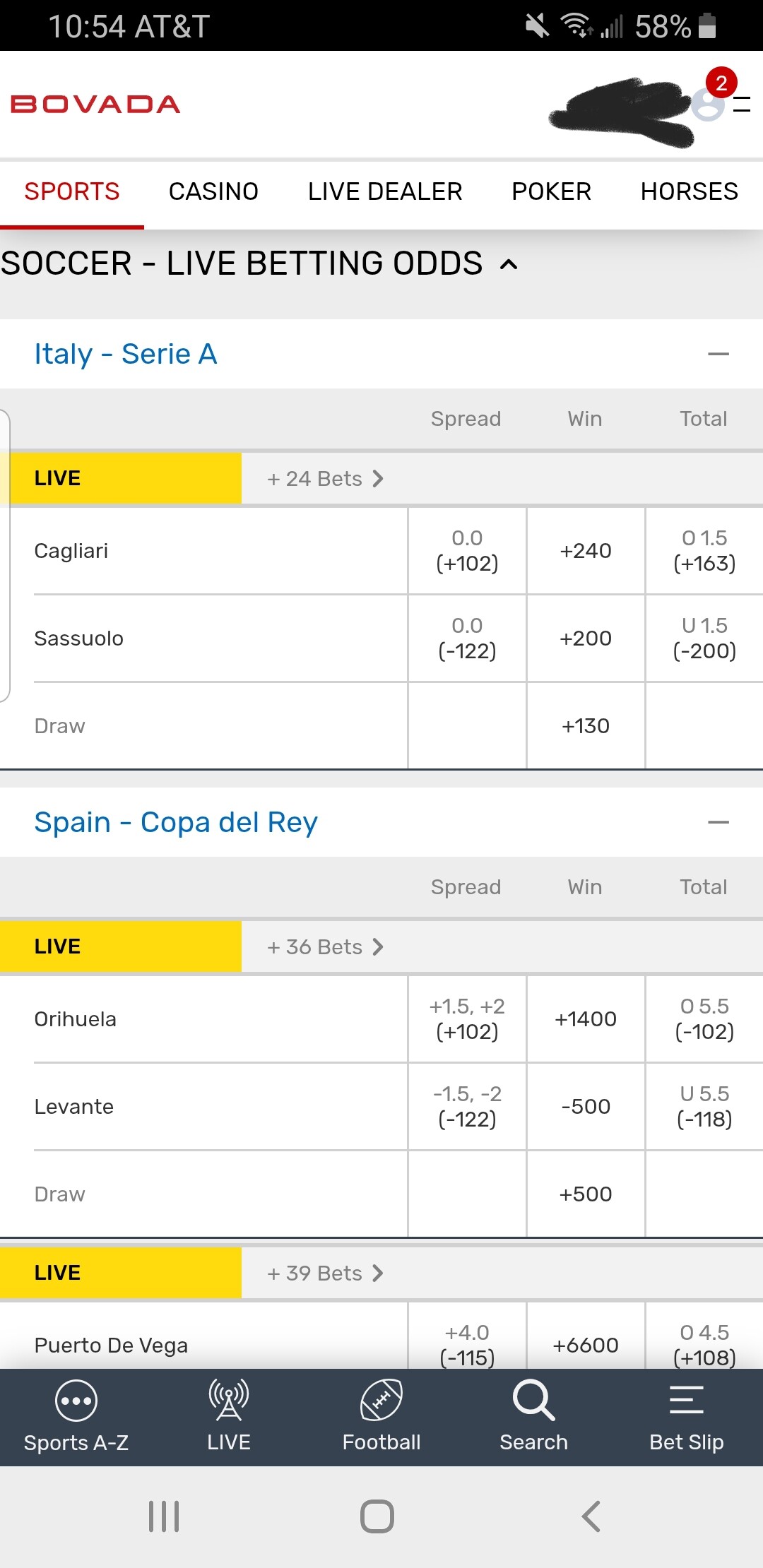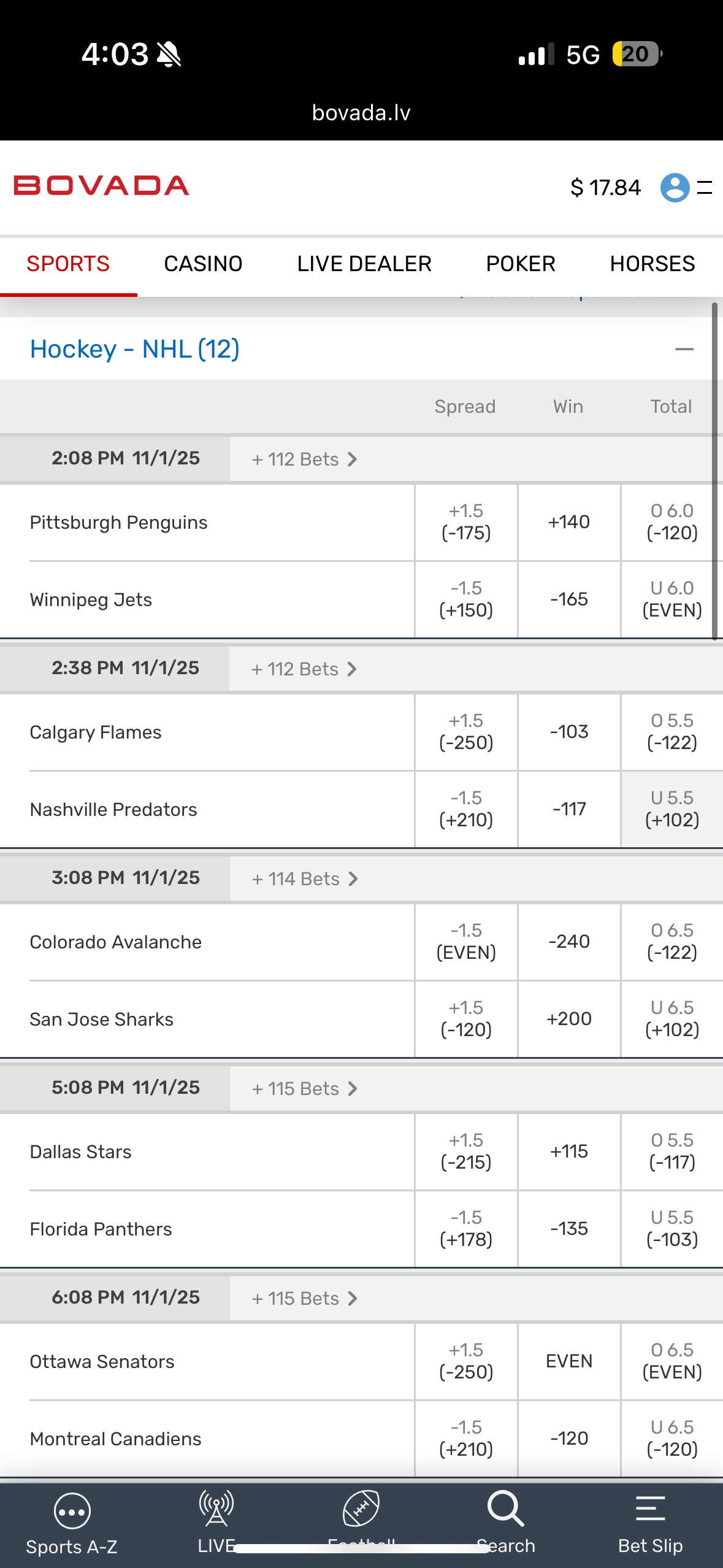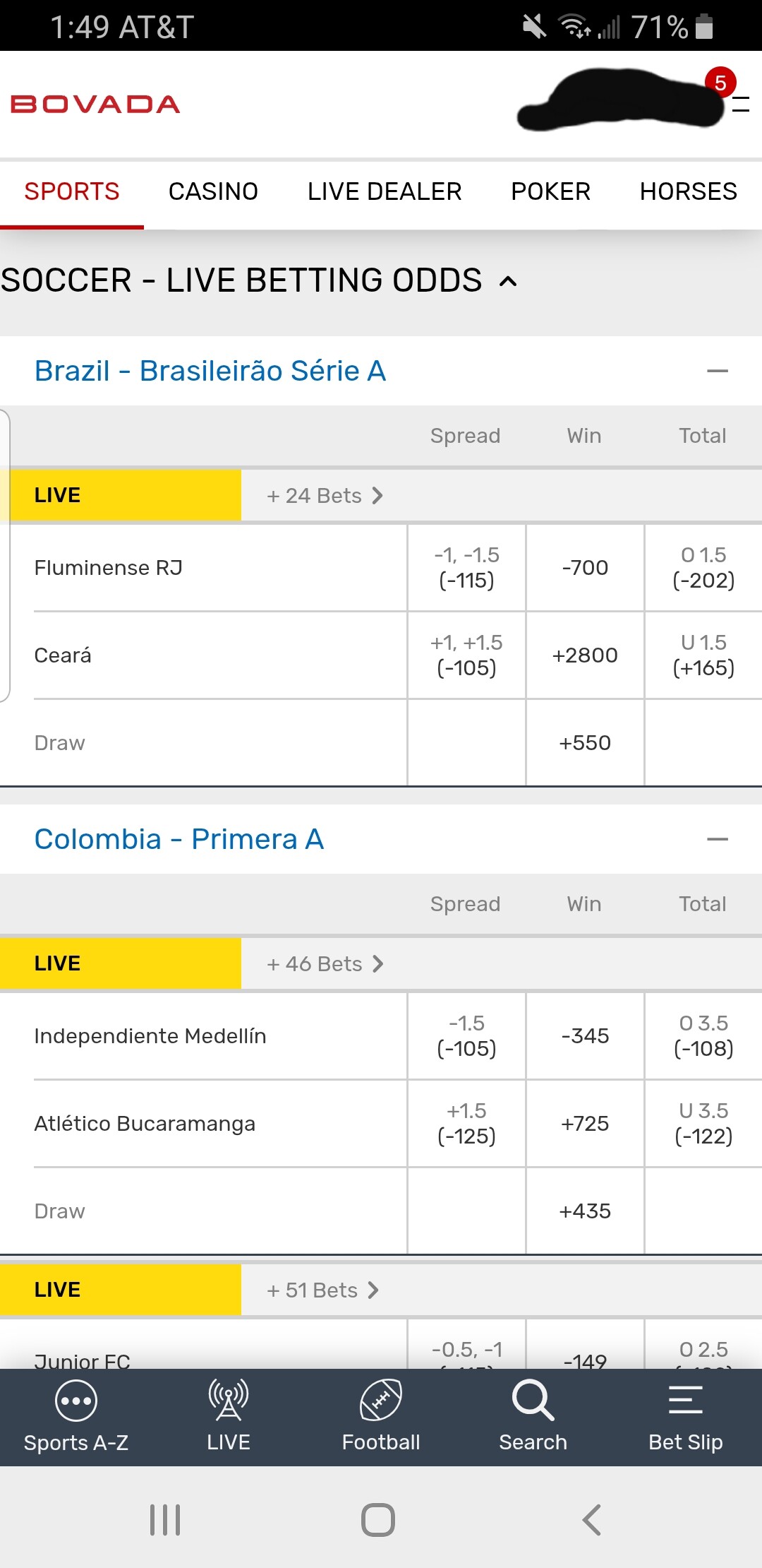 On the bright side, the finished games popping up is happening a little less, still happening though. Games will just disappear too and be replaced by the finished games, just when you’re about to select a bet, so frustrating. You can’t really take a screenshot of games disappearing for no reason. To clarify, it’s not Bovada taking them down, they’re just disappearing from the view so you then have to refresh and hope they show back up or search for it individually. Really fun.