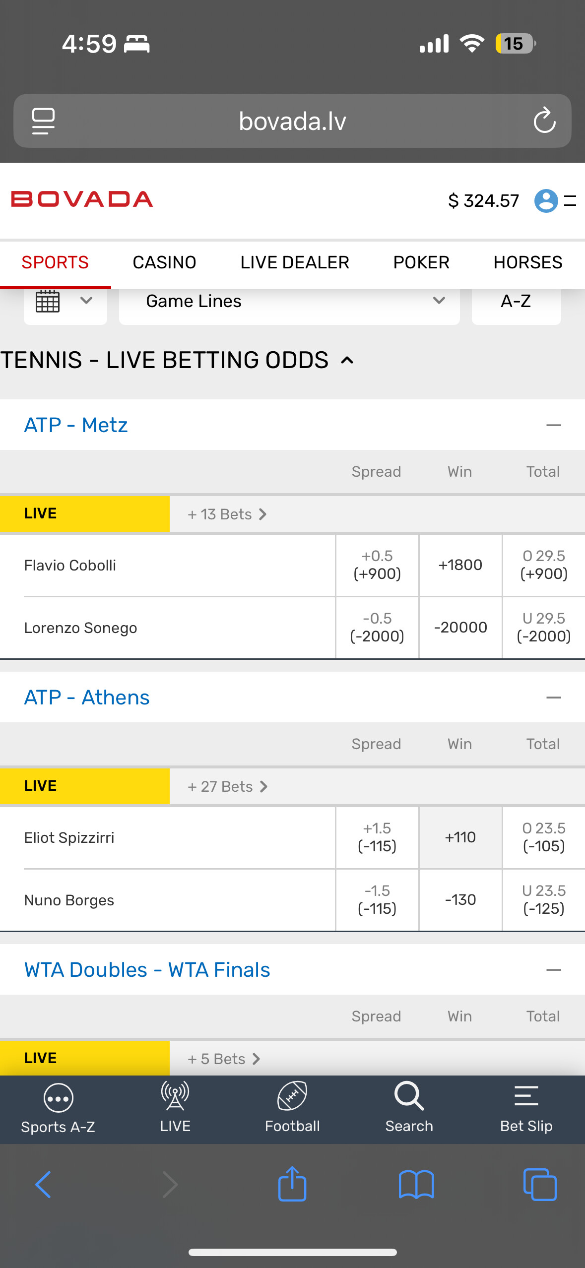 Trying to wager on tennis and sure enough the only things that populate after refreshing the page multiple times are matches that were completed presenting as if they haven’t completed.