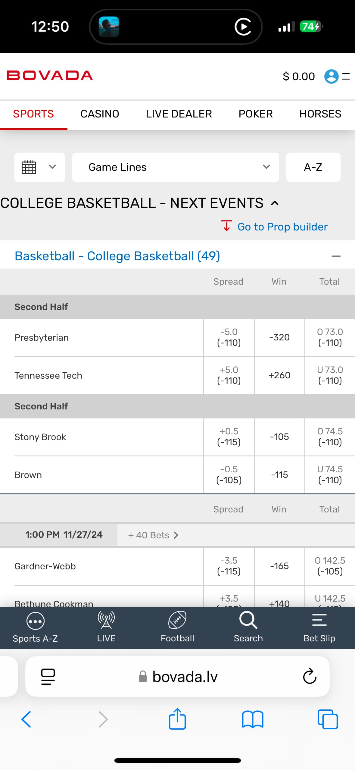 Live betting disappears on college basketball. It will be up and then literally be wiped from the page.