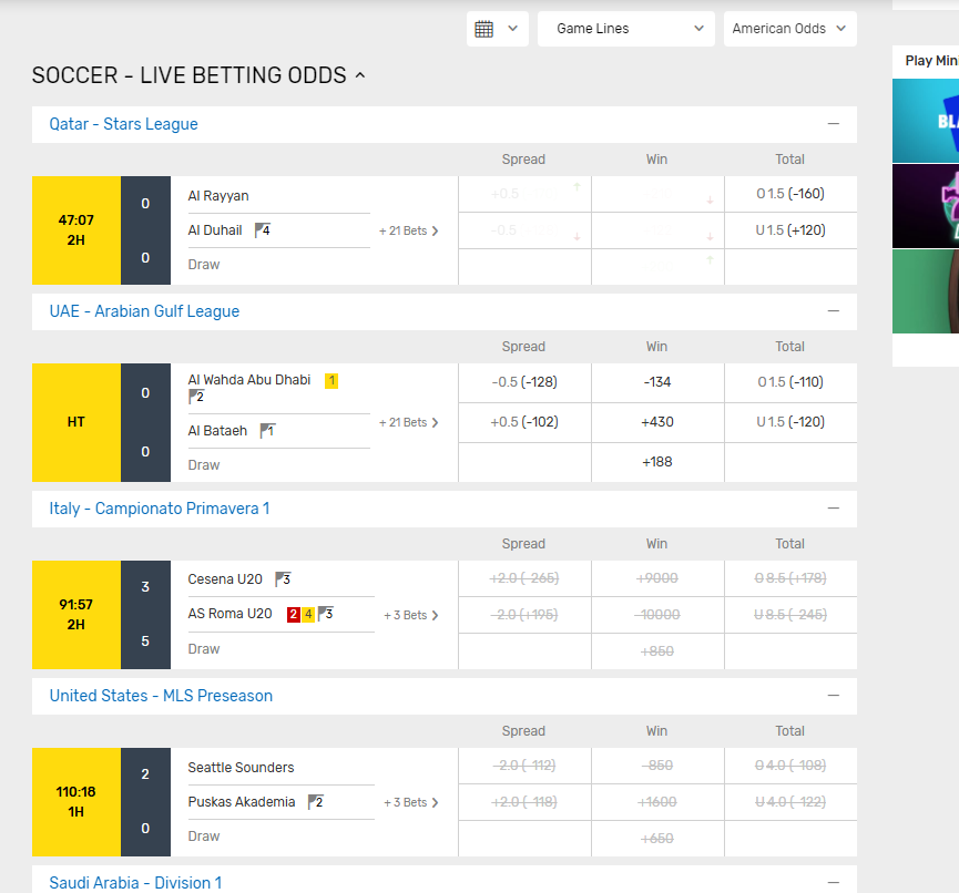There are only a few old stale lines currently. A few from tennis and one from soccer