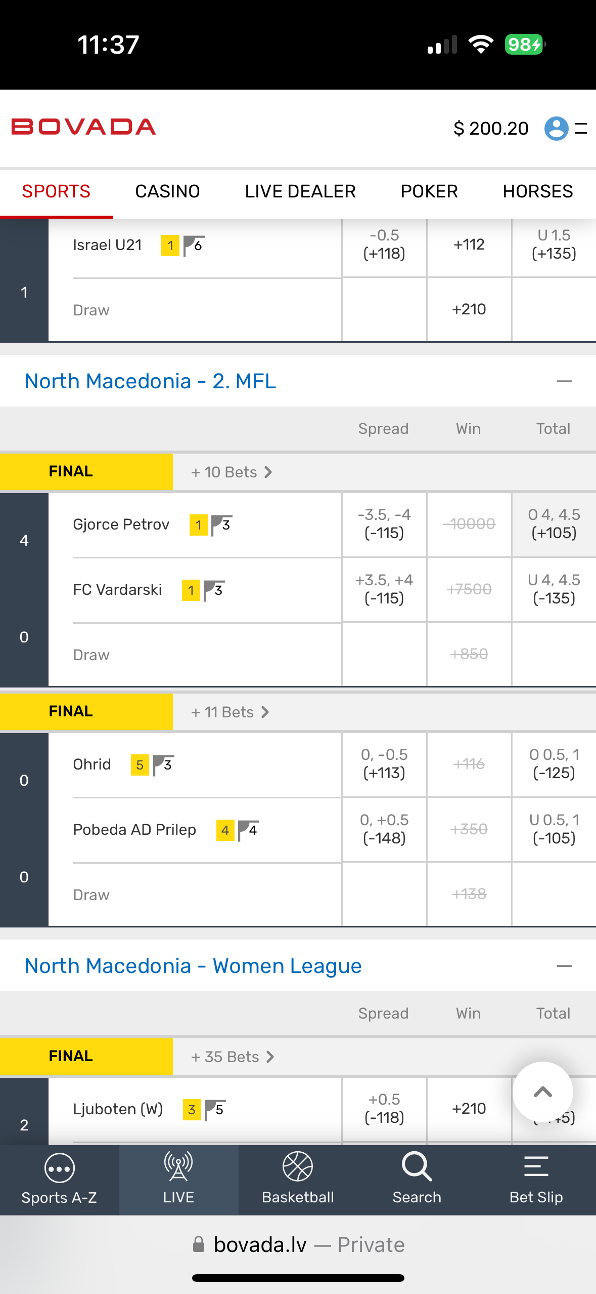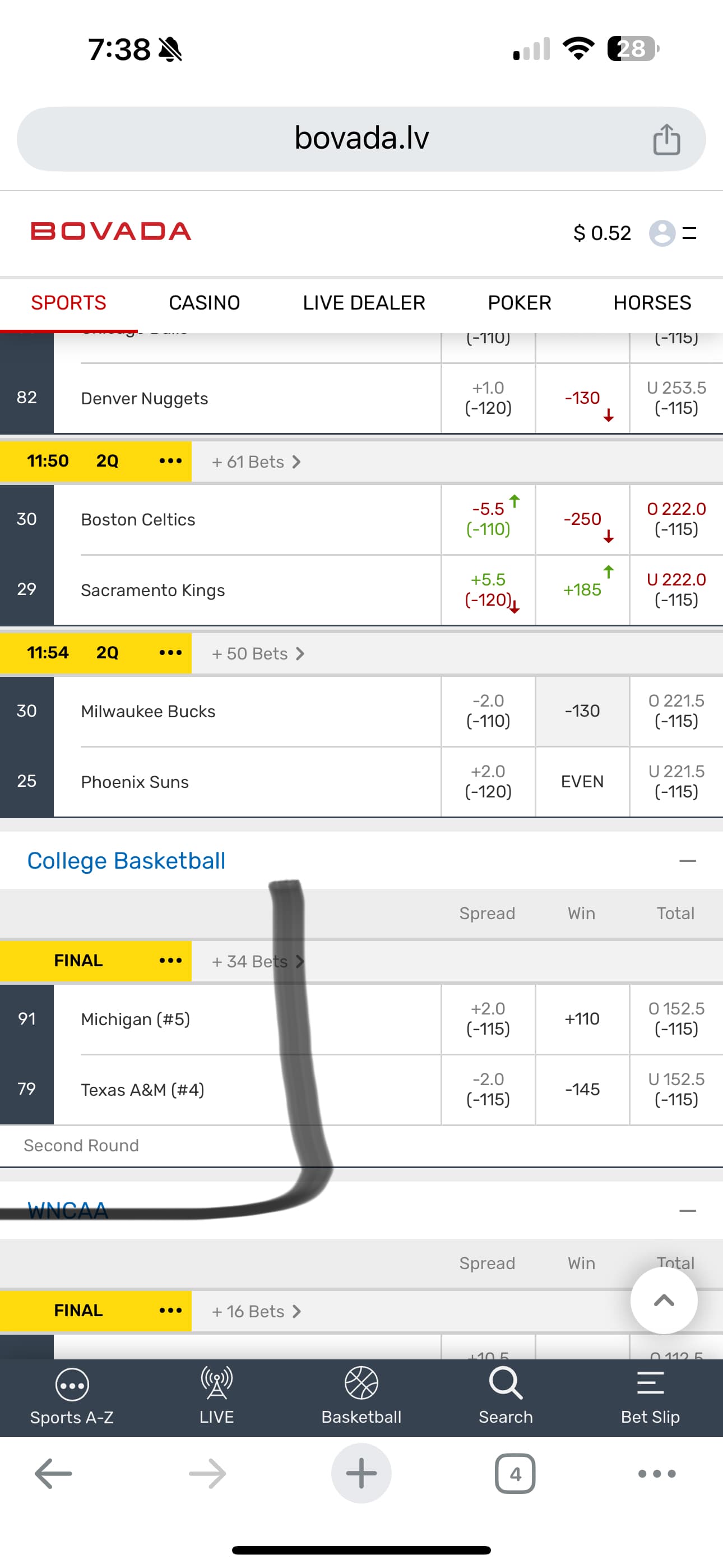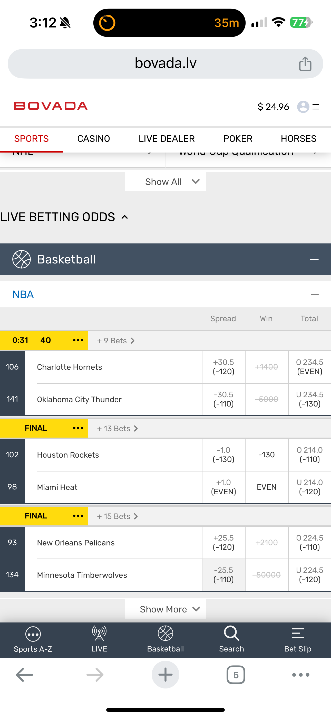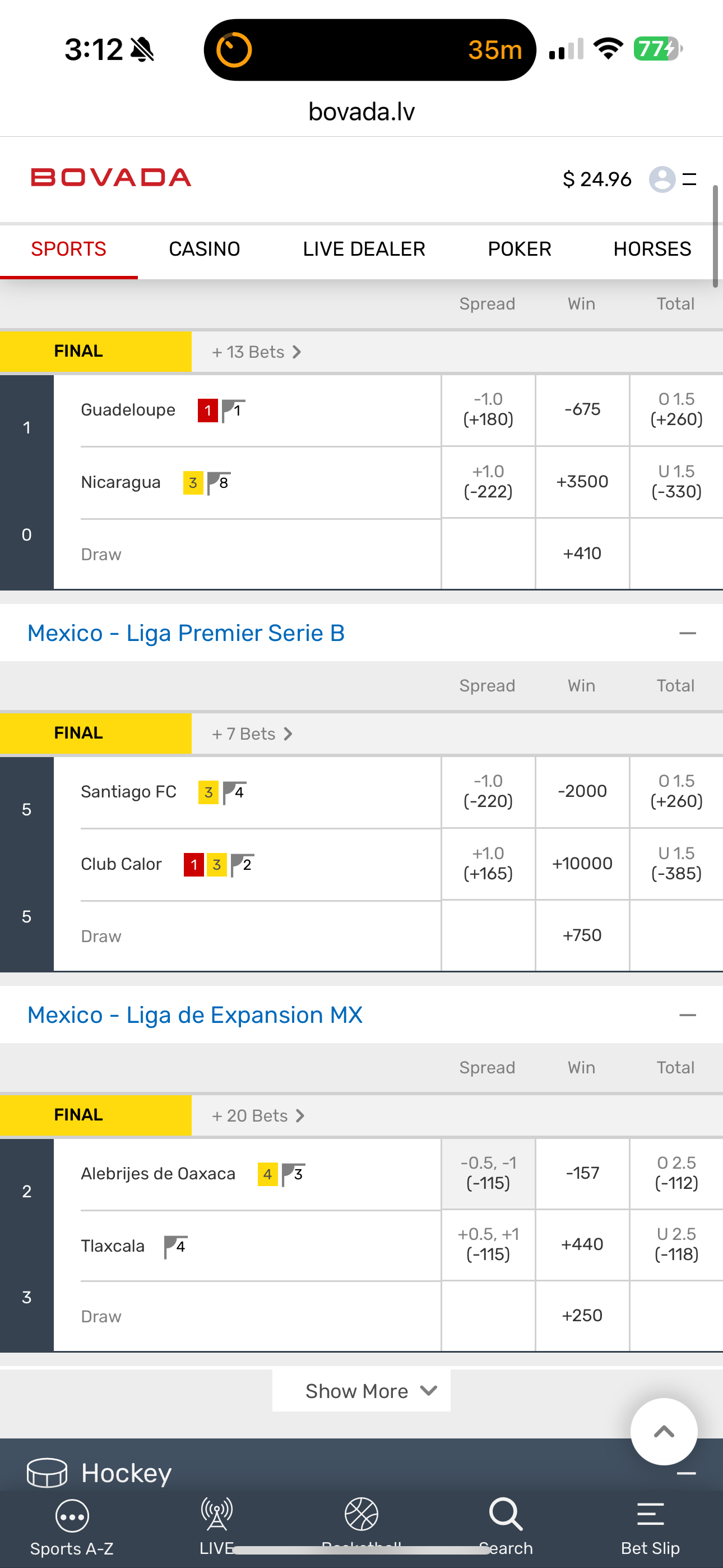 Its no make any sense that these live lines showing only past games an present games only giving a frame of a second an dissappear then to refresh the page again this is on purpose you can’t concentrate on a parlet that’s what bovada wants or drive to d casino