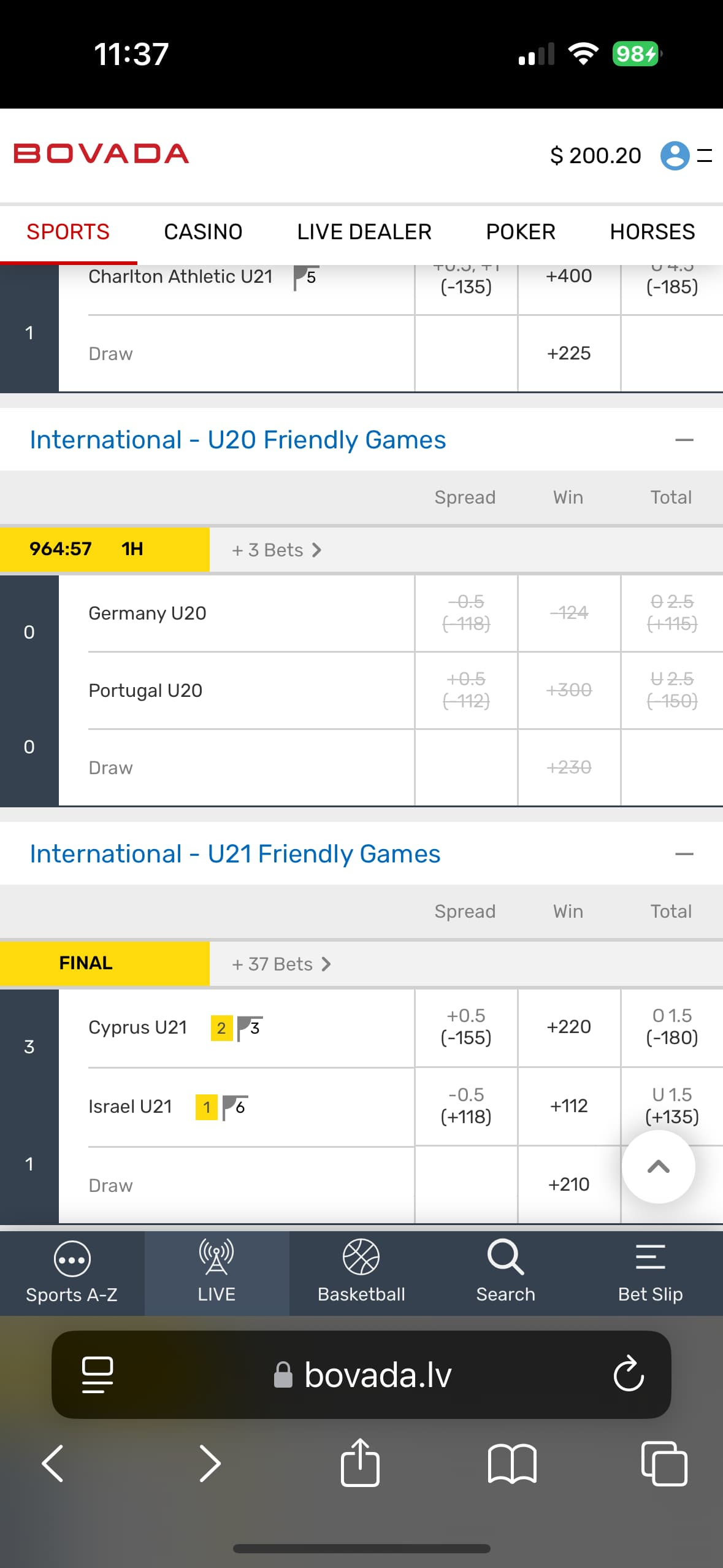 Hello @Jurnee_Bovada , is there a way you guys can show us any progress is being done? Obviously there is a huge problem with the live betting. Is there anything you guys can let the IT know to do an over night update? It’s 5 months already betting live use to be great now it sucks… refreshing and switching desktop mode and mobile mode gets frustrating. It ruins the experience on betting live