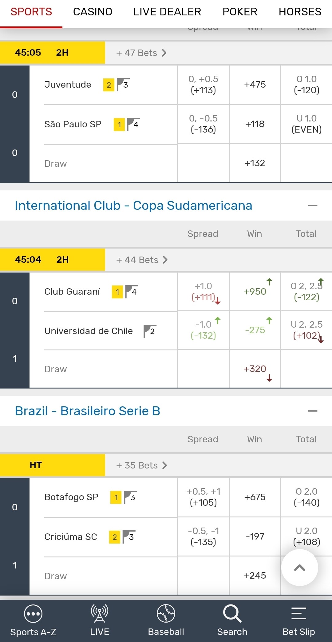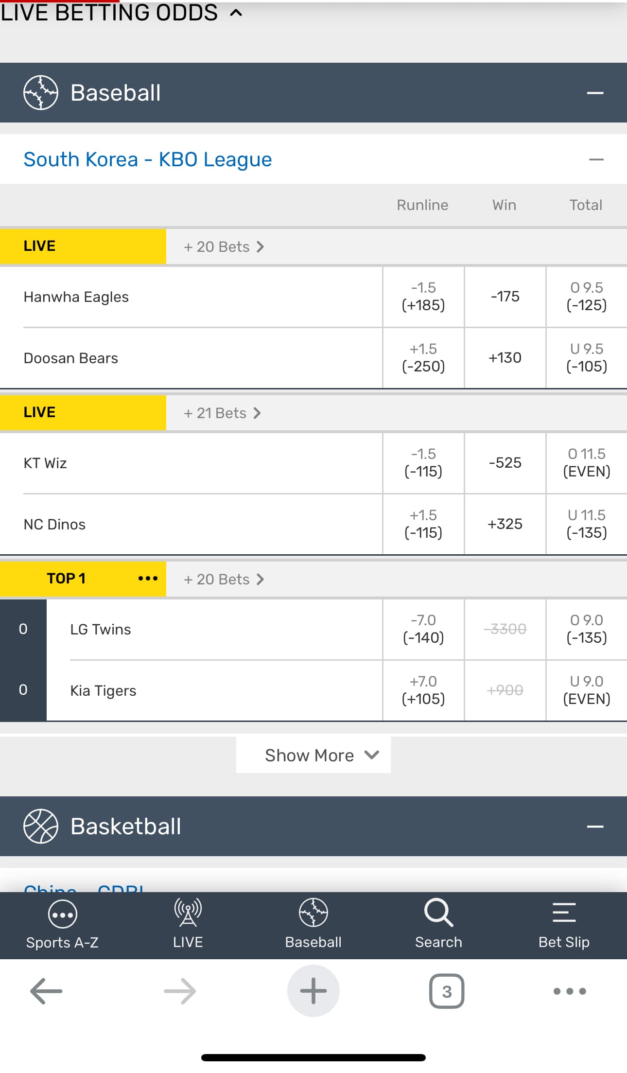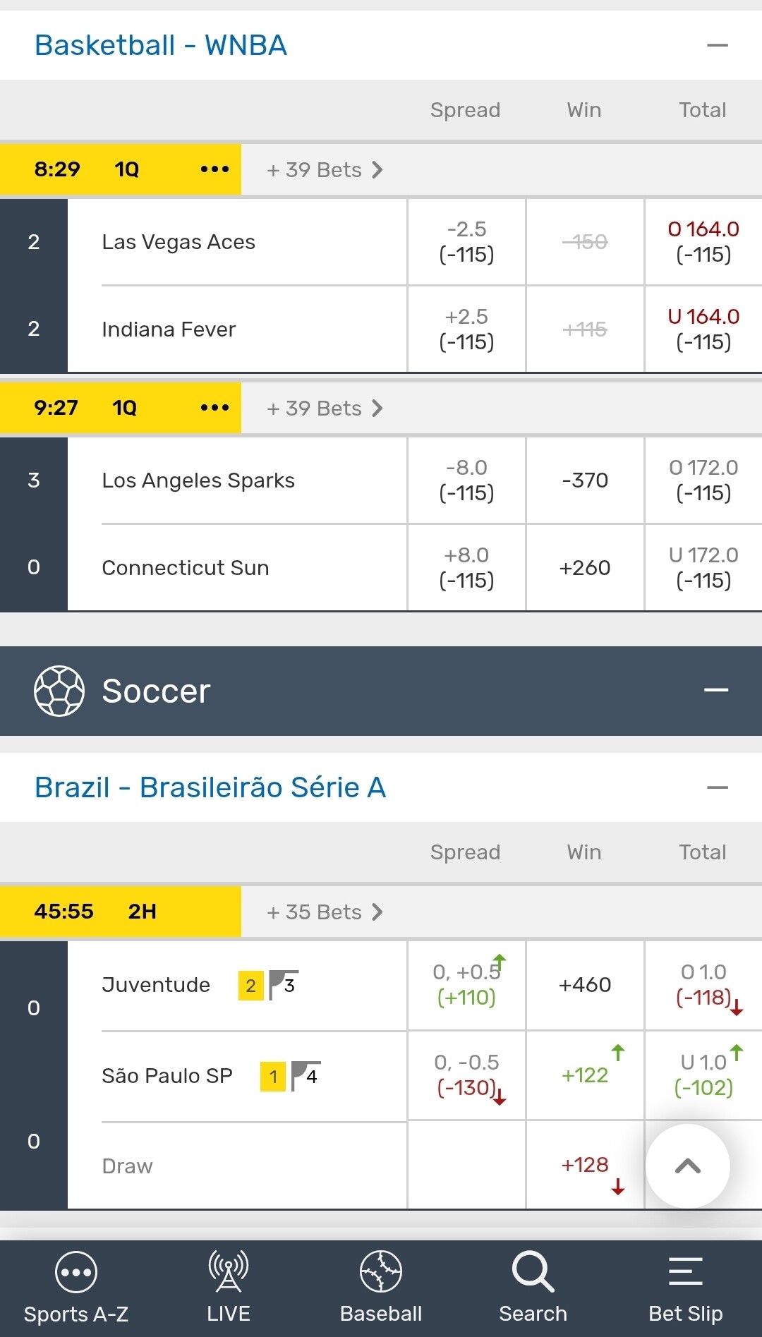 There’s are a few lines that are up but most of them don’t look right either in that they’re not showing scores