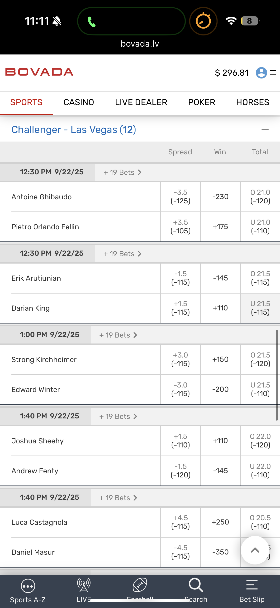 This is what I’m seeing right now. Lines from a week ago. I would sure love to wager on some of these now. Too bad I can’t!