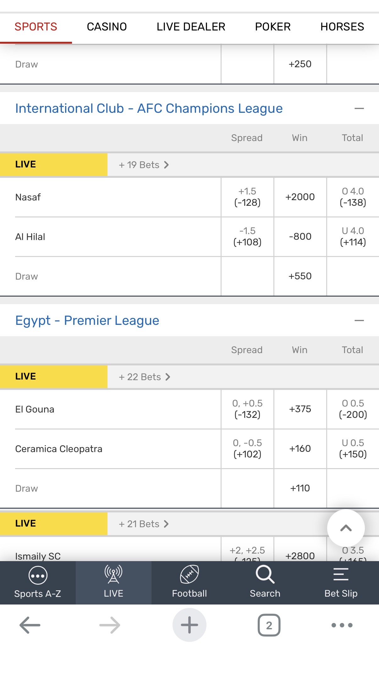Can you give us an example so we can take a look, i’m seeing quite a lot live right now, but there is nothing on live for the leagues you are referring to?