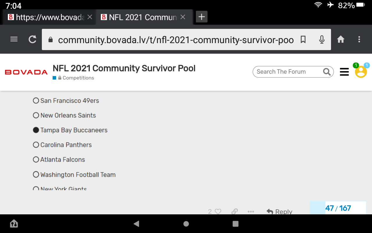 That was close! Congrats to those who selected Tampa this week you will move on to week two! I just want to reiterate the fact that the polls canāt prevent you from taking the same team twice, but if you do you will be disqualified. Those who selected Tampa for week one, please donāt select them again for the rest of the season, and best of luck moving forward!
