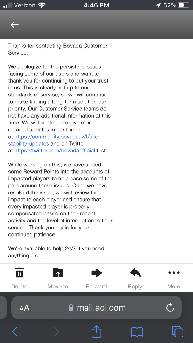 At this point you can’t trust bovada they seriously told me we would be getting compensation today then another person basically told me not a chance