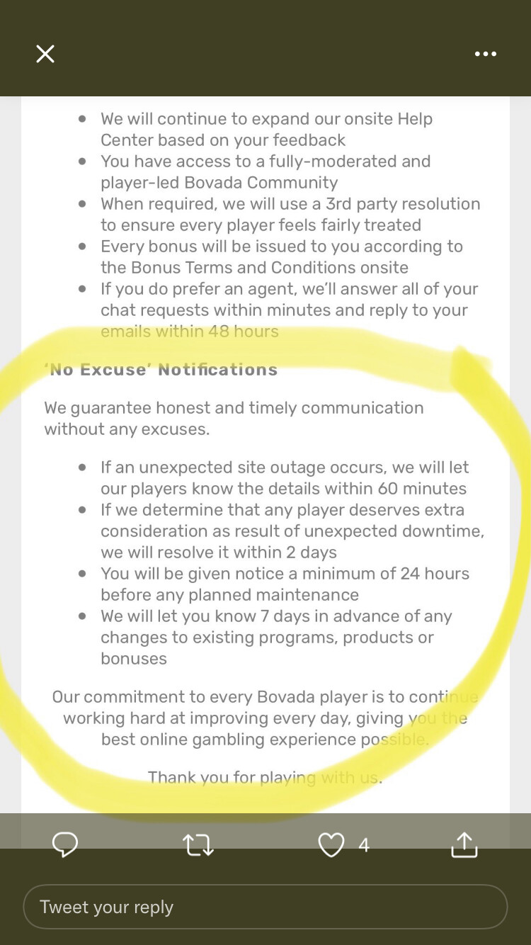 Such a terrible handling of every single outage or issue they have…it’s ashamed. The end of bovada is near people !