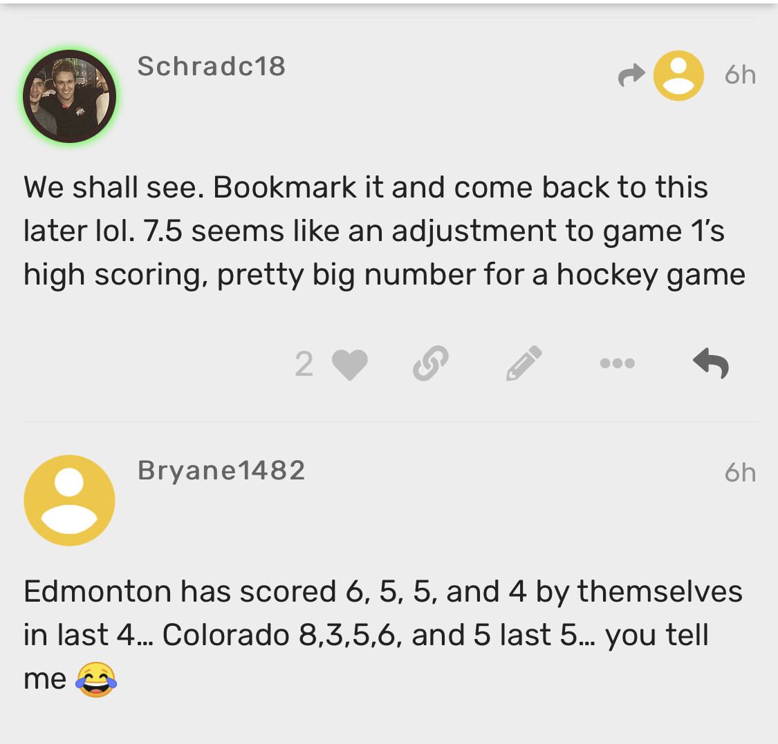 Agreed with the over 7.5 for Avalanche Oilers? Lol Nahh dude I said I donāt like it seems like an over adjustment and the number was too high