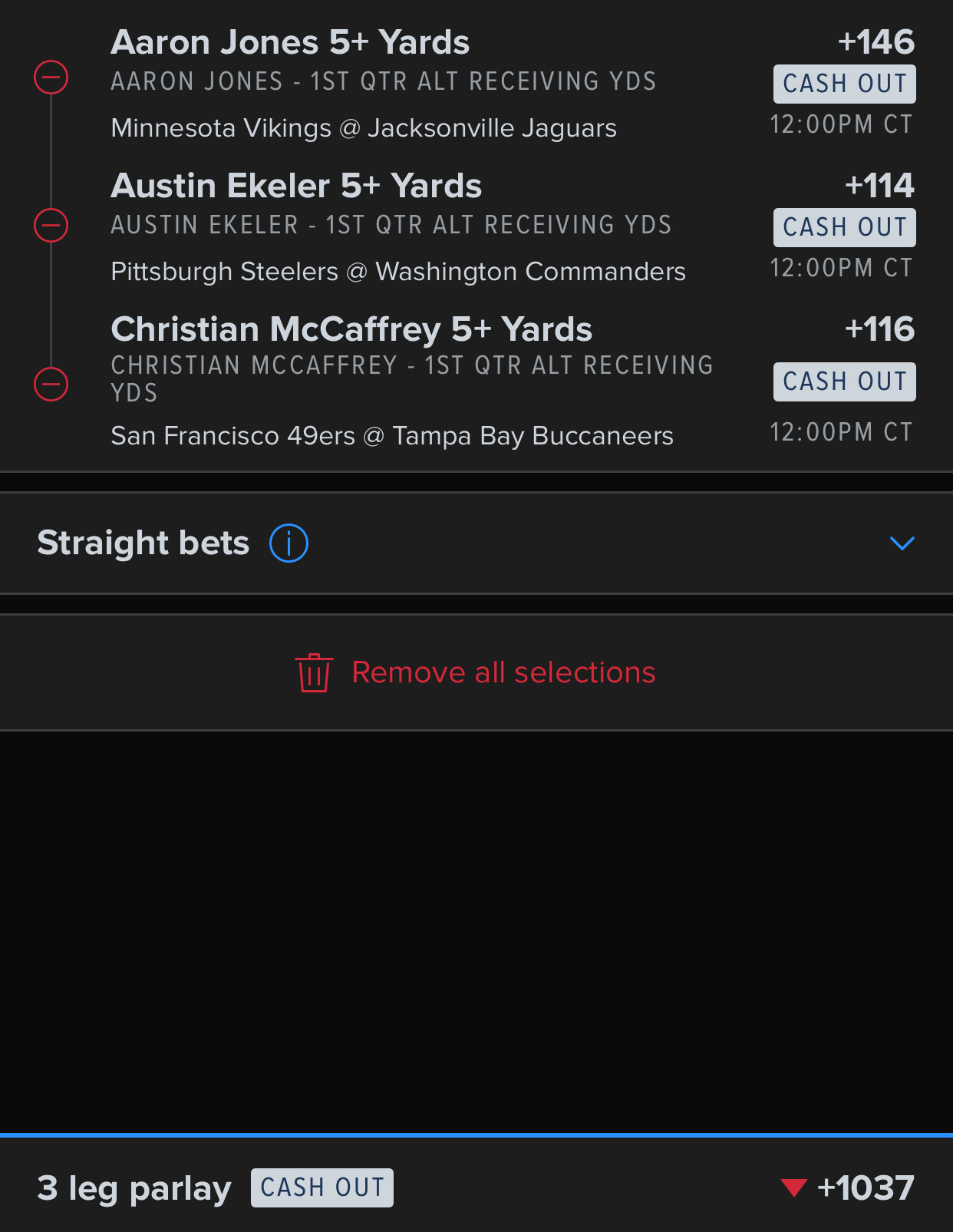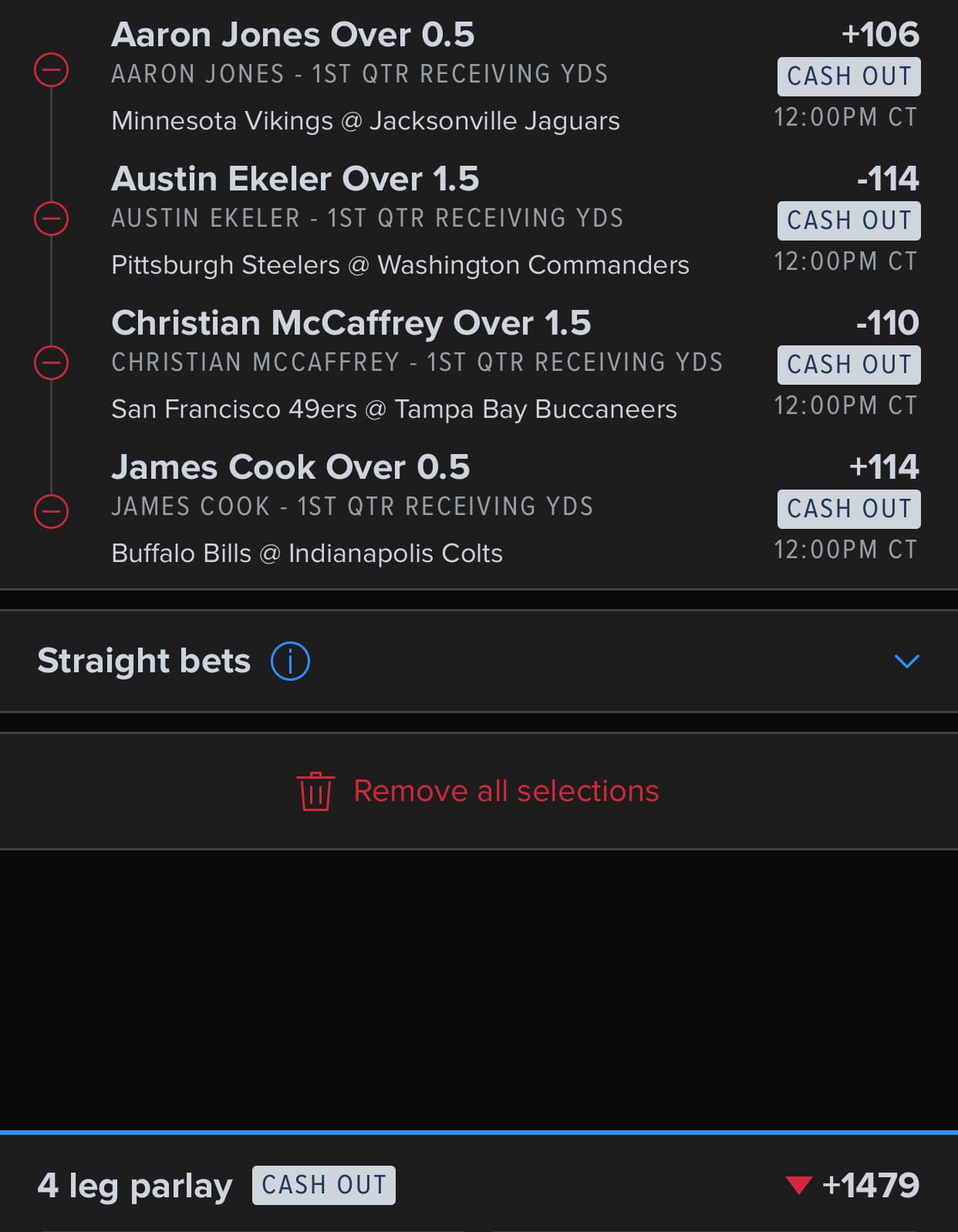 Christian McCaffrey 1st qtr receiving yards over 1.5