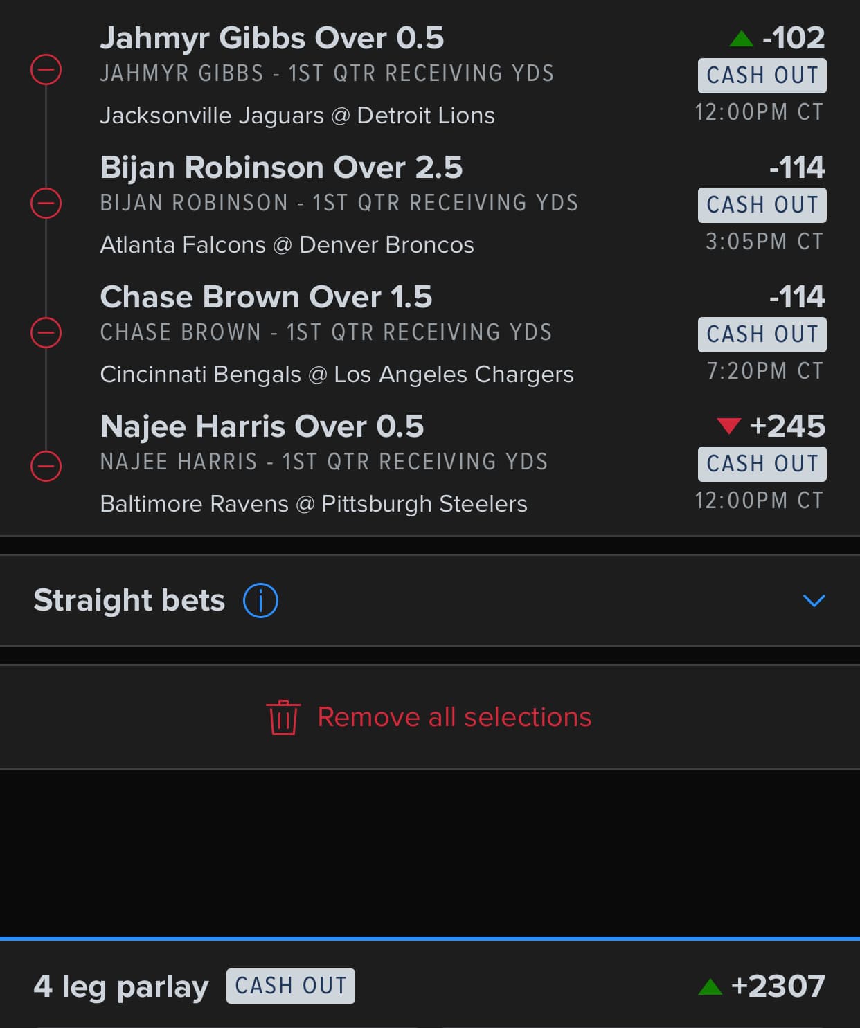Bijan Robinson 1st qtr receiving yards over 2.5