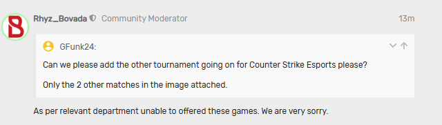 This is not in your control and you are relying on your team, so no need to apologize! I totally understand! Thanks for providing updates @Rhyz_Bovada