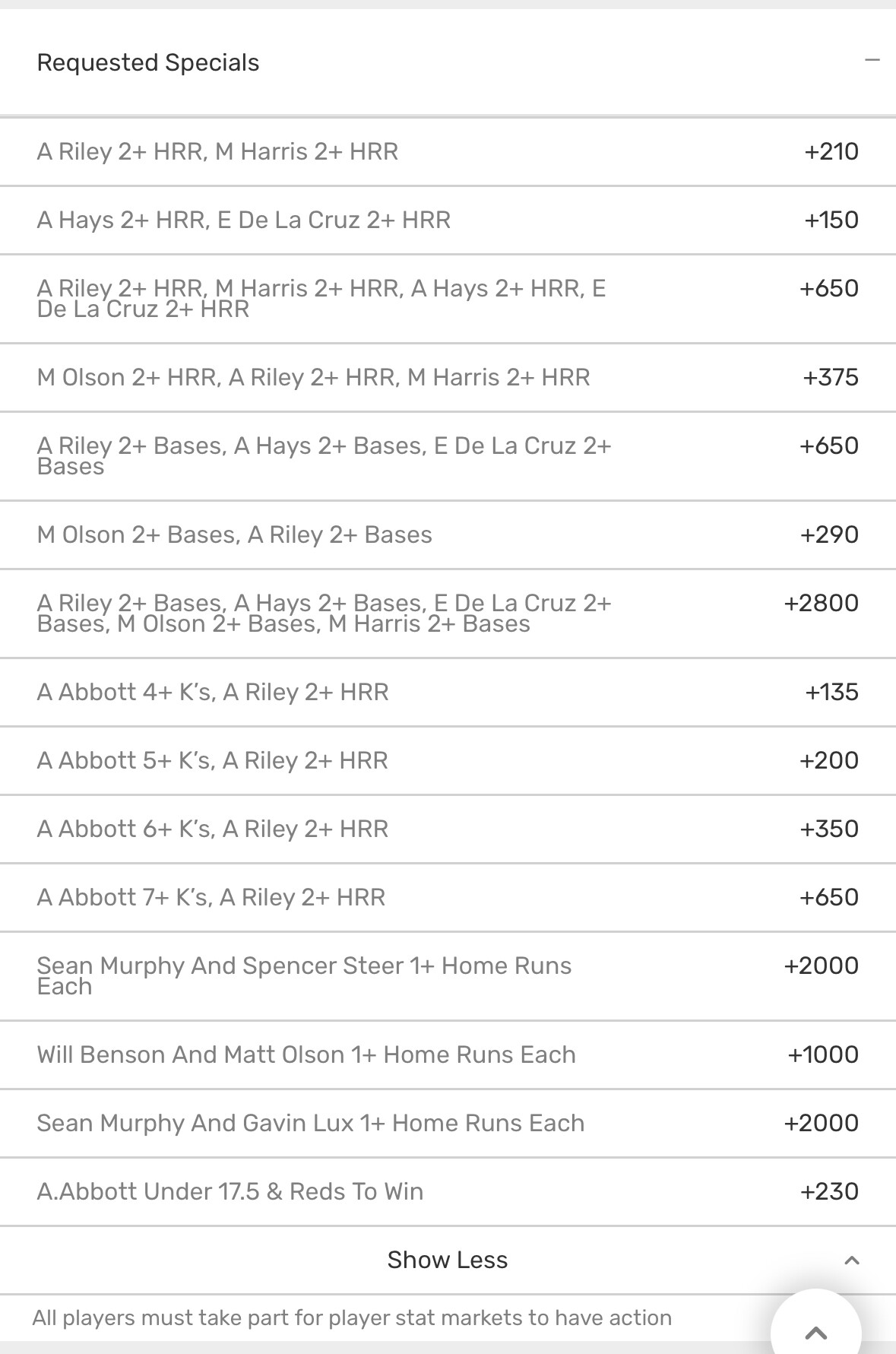 Parlay #3: Atlanta Braves @ Cincinnati Reds