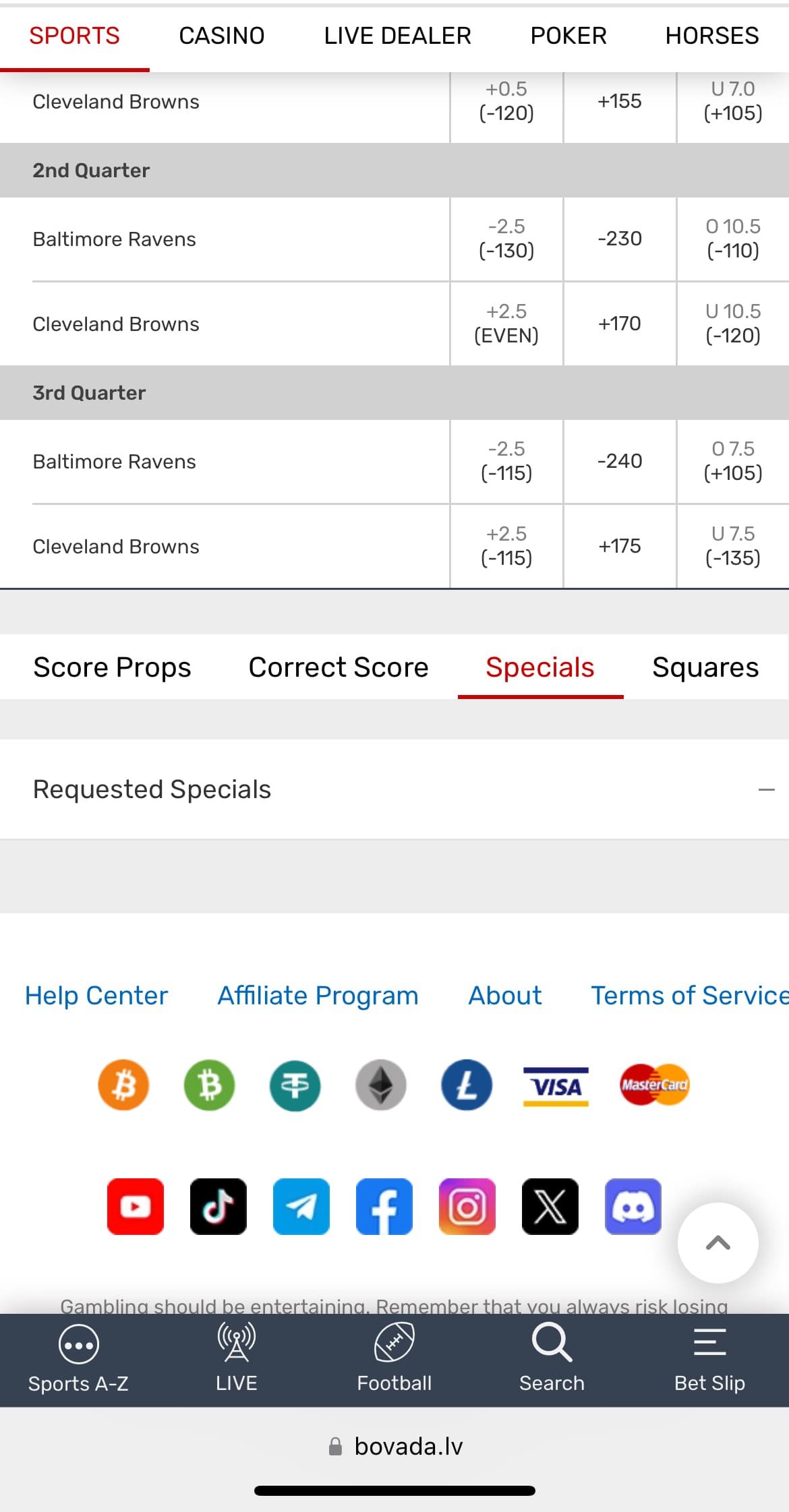 Parlay requests for Bengals vs Steelers