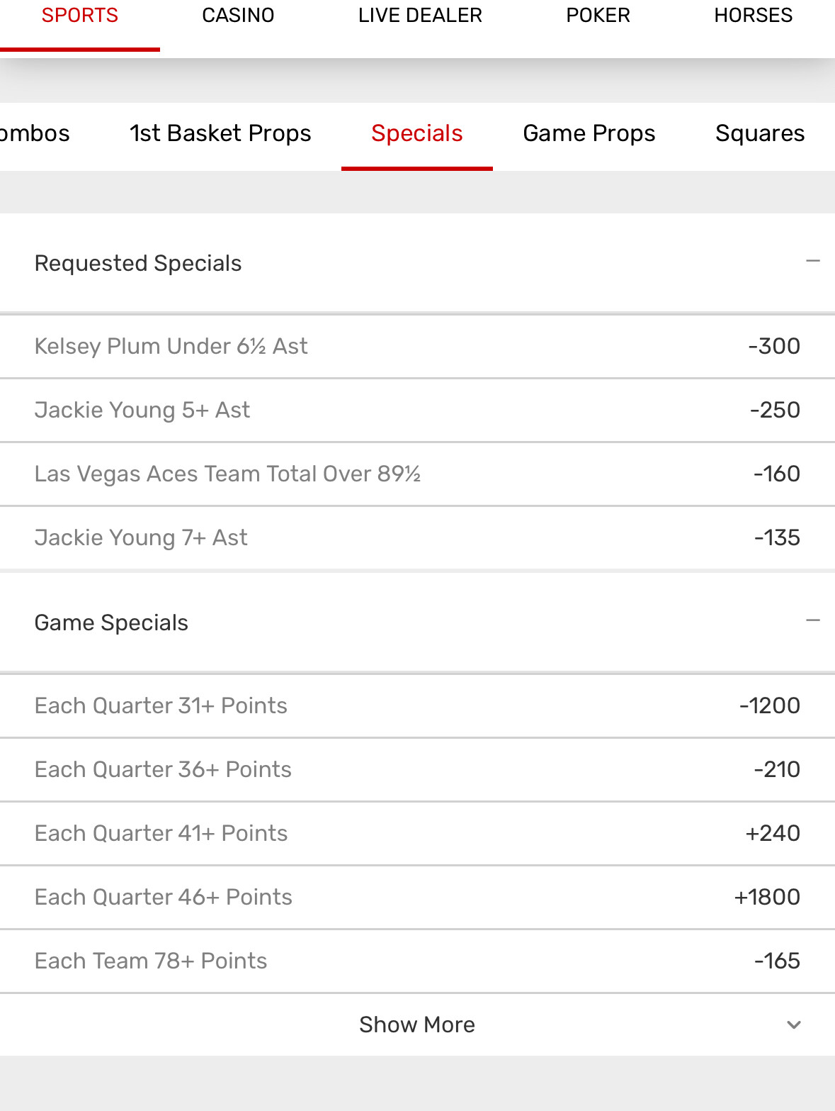 Are these separate lines? Pts + ast Which line or do you just want the market to be available?