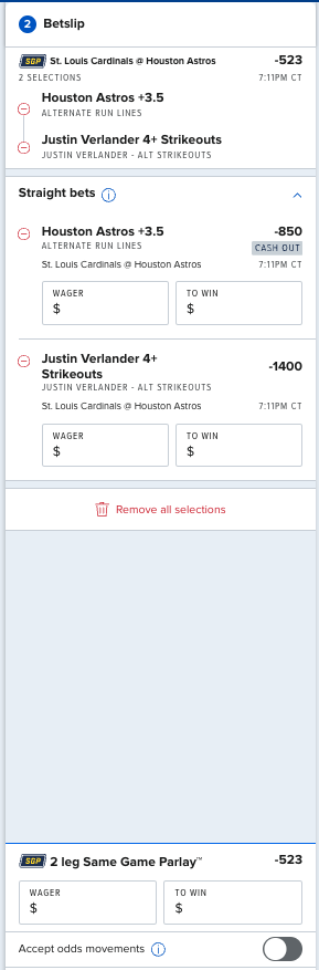 Houston Astros +3.5 ALTERNATE RUN LINES