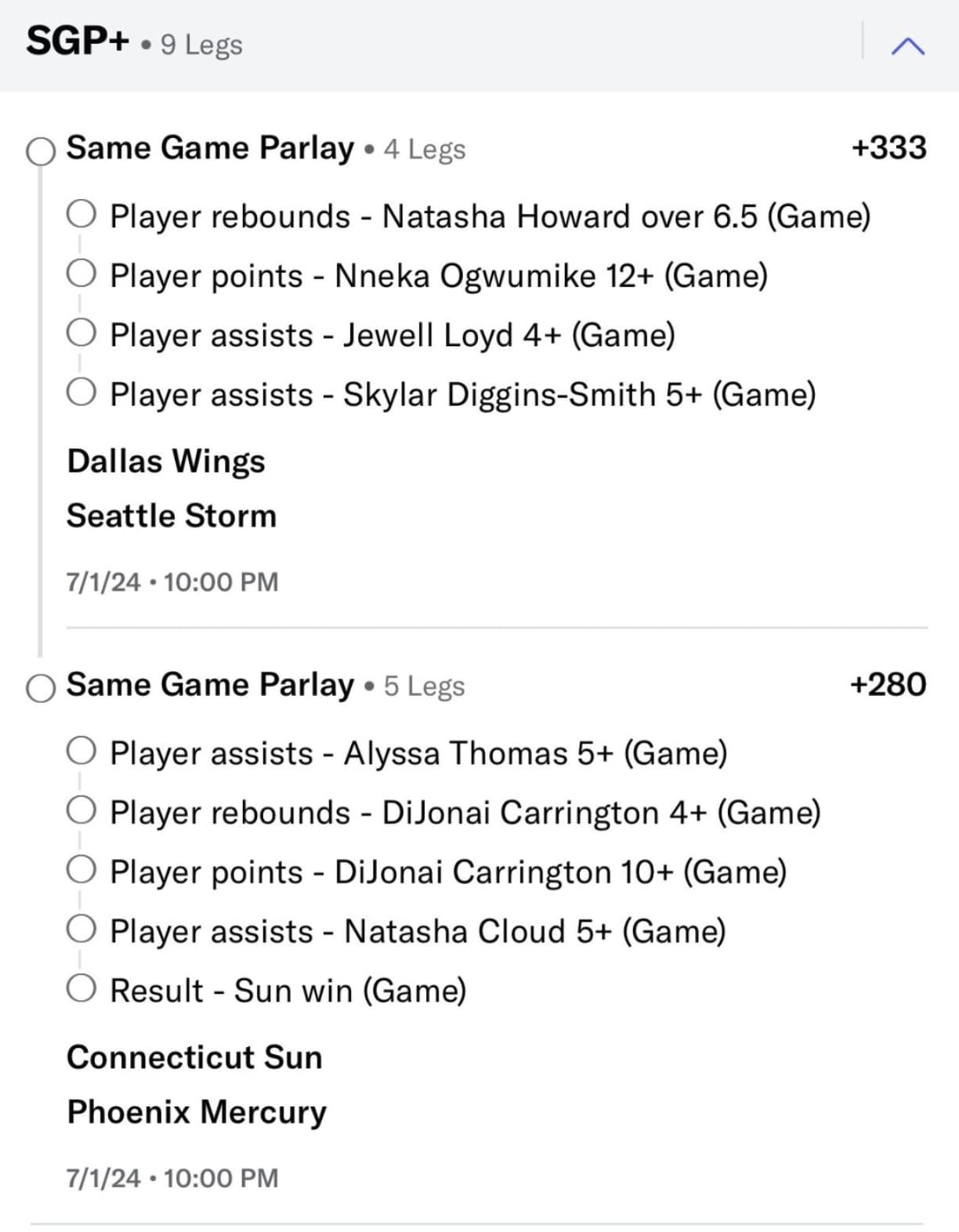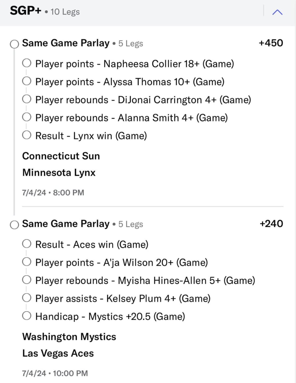 Hello! Can I have the following 4 combinations added for the Twins MLB game as 4 separate parlay specials please?