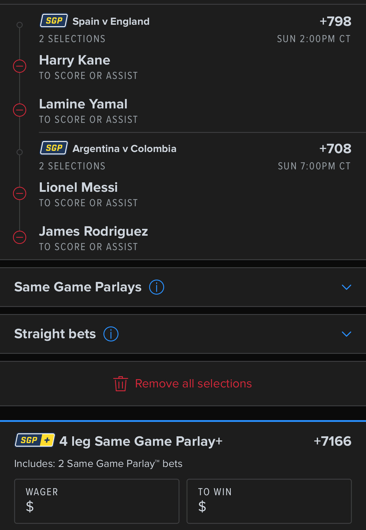 Can we add these for the in either requested specials on each game or all together in daily soccer specials for Sunday’s finals?