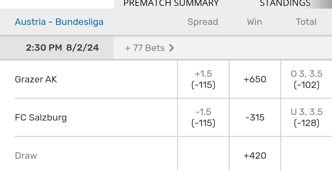 Salzburg-Grazer 1st half over O.5 (Only 0.75 and worse is offered)