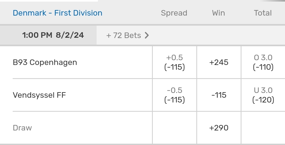B93 Copenhagen -Vendsyssel 1st Half O.5 (Only .75 and worse is offered)